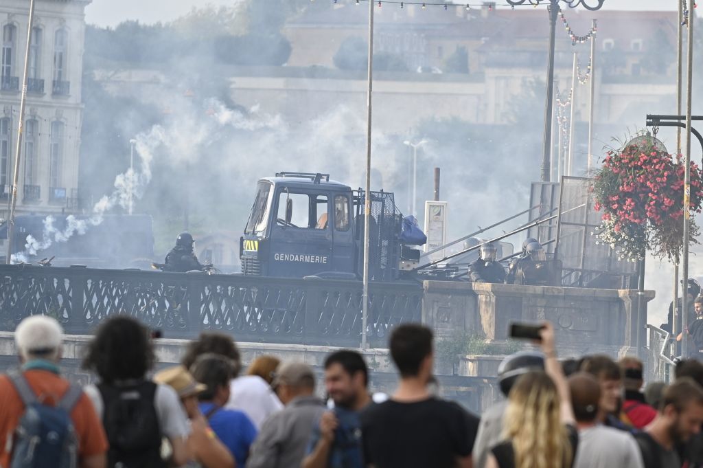 Poliția franceză a folosit, sâmbătă, tunuri cu apă și gaze lacrimogene pentru a dispersa protestatarii antiglobalizare din apropiere de stațiunea unde are loc summitul G7.