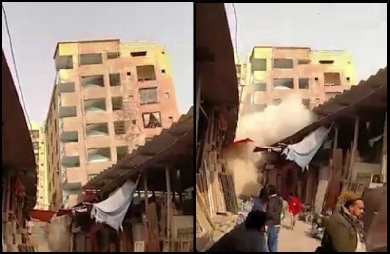 Clădirea de apartamente din Karachi, Pakistan, s-a prăbușit, la aproape 40 de minute după ce locatarii au fost evacuați de poliție, alertată că mai multe crăpături au apărut în pereți. Incidentul a a vut loc în ultimele zile ale anului 2019.