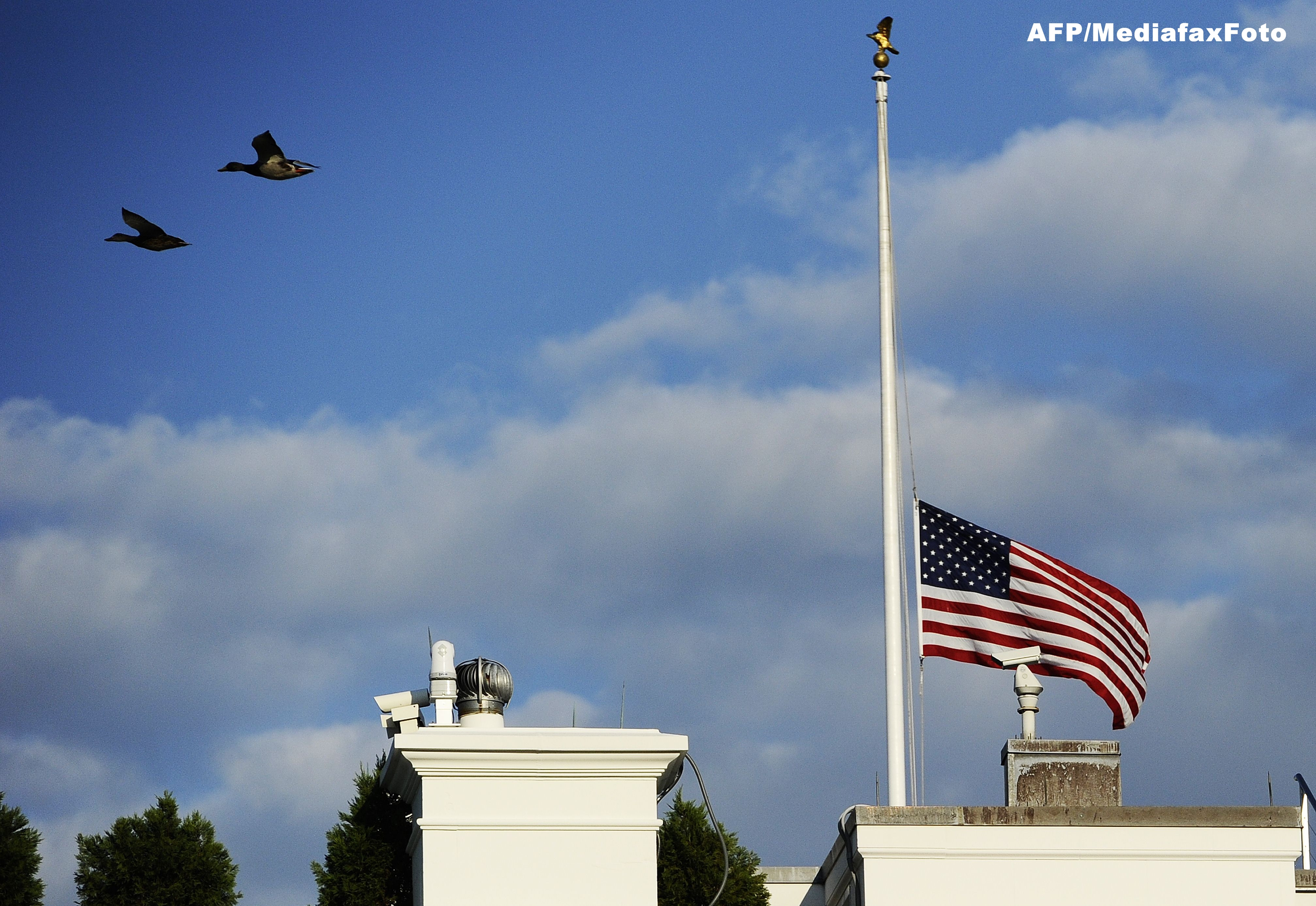 Decretul, care arata ca drapelul va fi coborat in berna pana vineri seara, se refera si la cladirile Marinei si steagurile posturilor diplomatice si bazelor americane din intreaga lume.