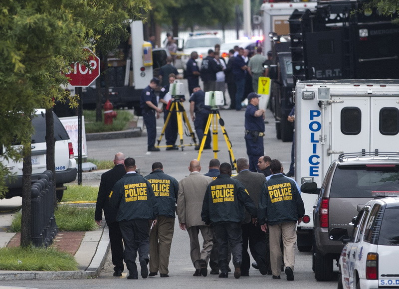 Trei focuri de arma au fost trase la Cartierul general al sistemelor Fortelor Navale, situat la periferia sud-estica a orasului Washington.