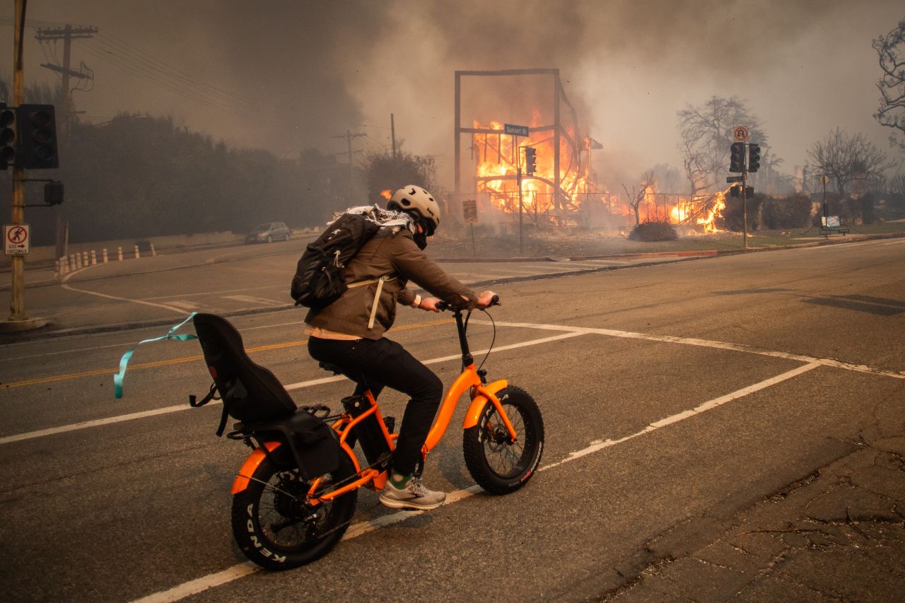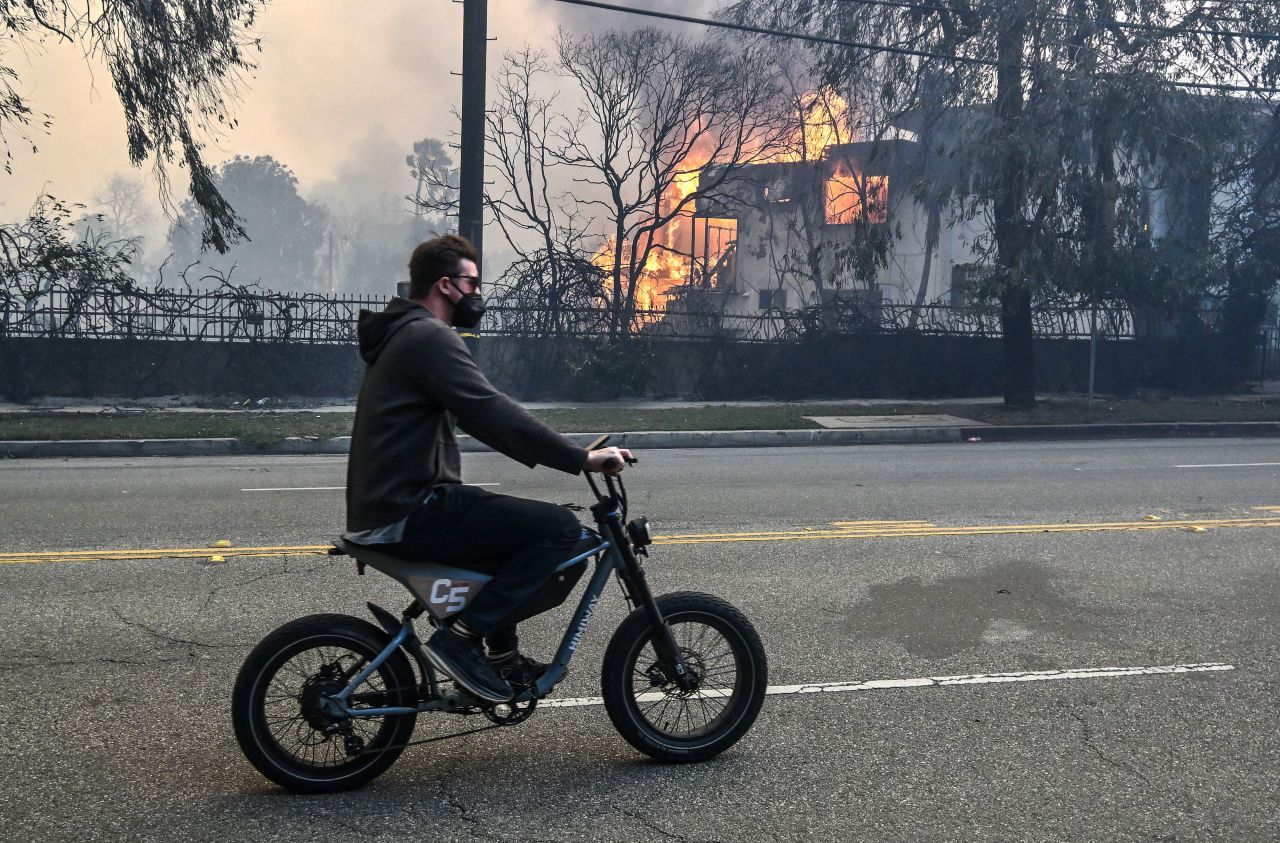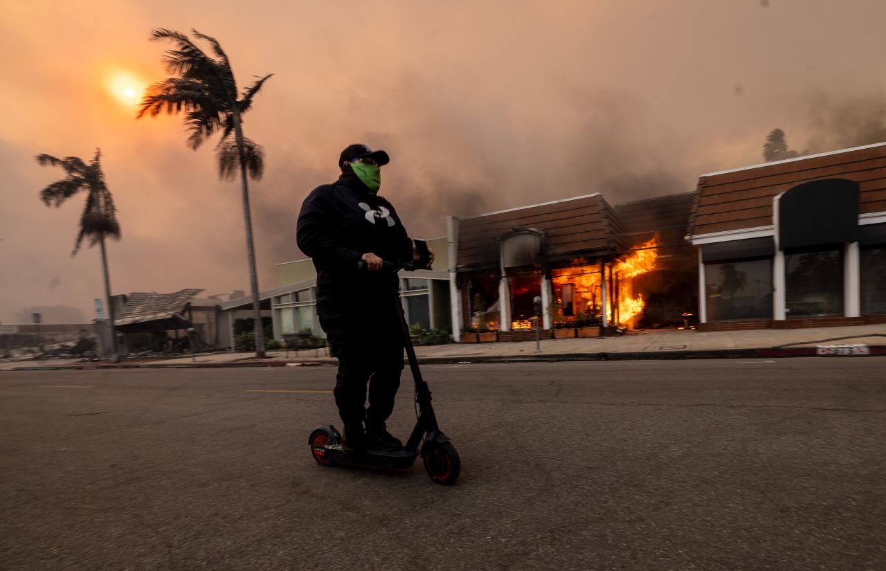 Helena Humphrey, corespondent BBC: „Ne aflăm pe autostrada de coastă a Pacificului, una dintre cele mai faimoase șosele din lume. În mod normal, de aici nu ar trebui să vedem malul Oceanului Pacific, dar acum se vede, din cauza distrugerilor uriașe, toate acele case de milioane de dolari făcute scrum. Se poate vedea cum, casă după casă, pur și simplu au dispărut.”