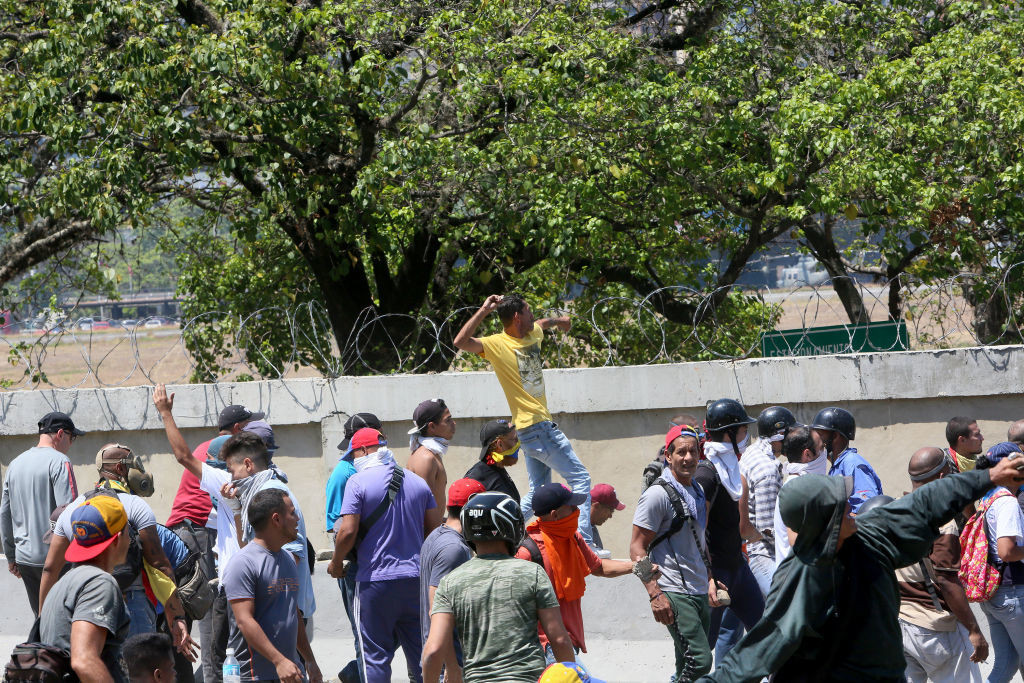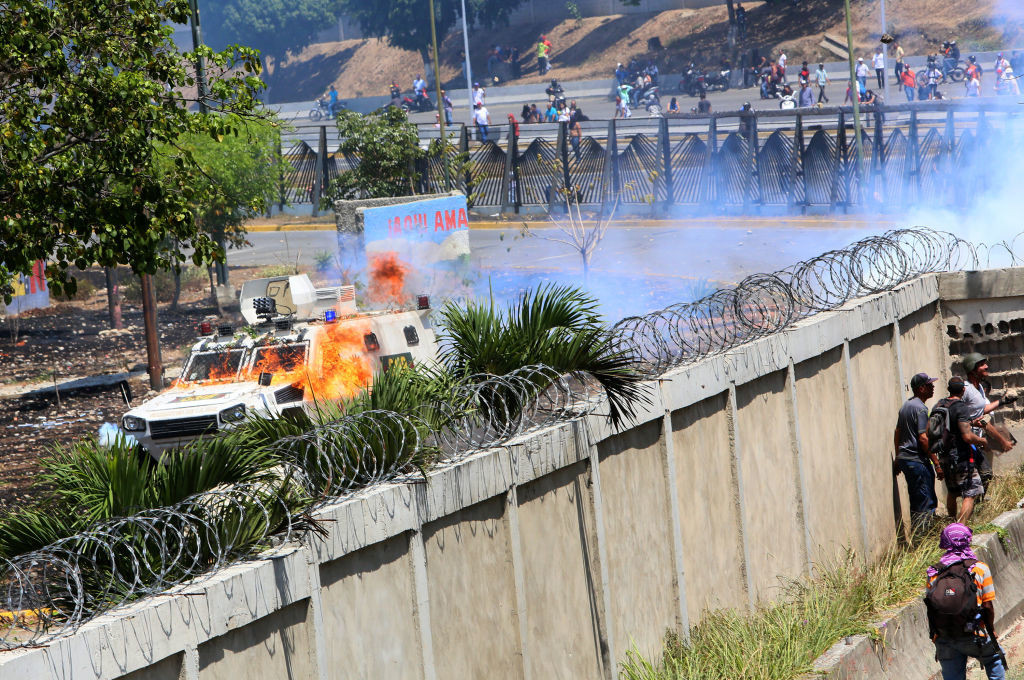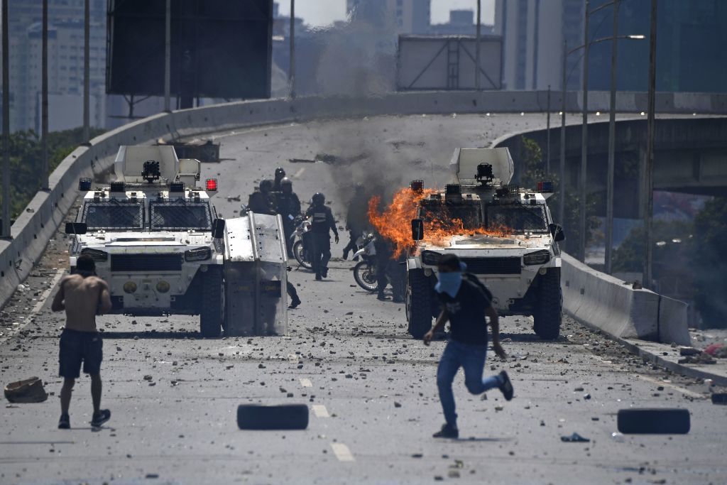 După anunțul lui Guaido, grupuri de manifestanţi au incendiat un autobuz şi au aruncat cu pietre în soldaţi lângă baza aeriană La Carlota.