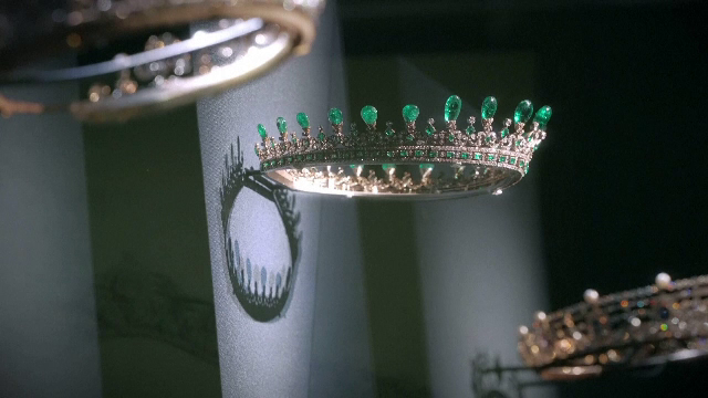 Unele dintre cele mai impresionante piese împrumutate sunt tiare și coroane împodobite cu smaralde, safire și diamante purtate de regina Victoria a Marii Britanii.