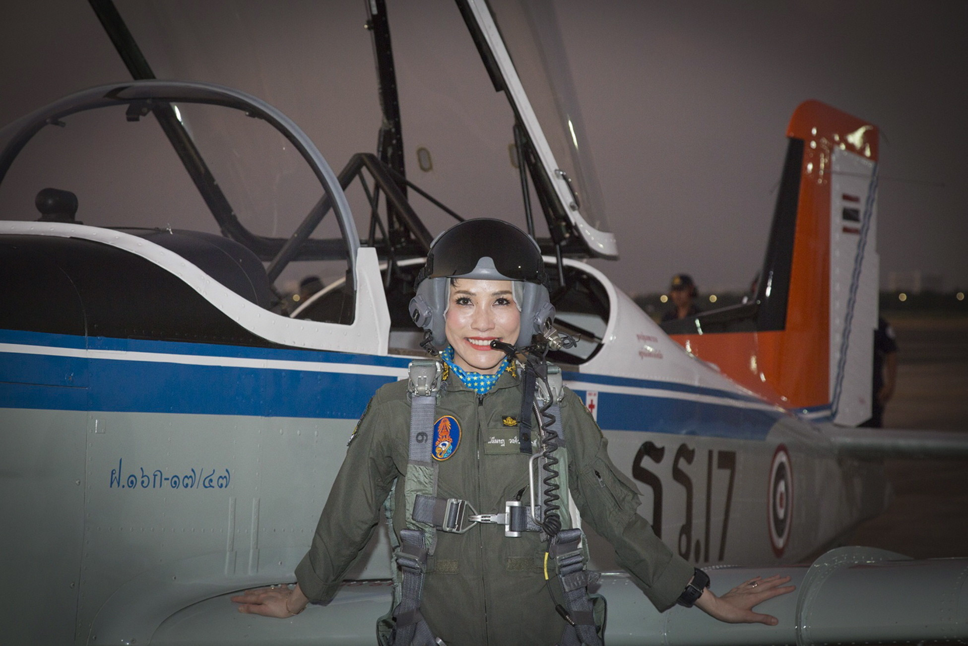 Concubina regelui Thailandei, surprinsă pilotând un avion și trăgând cu arma. Imagini rare