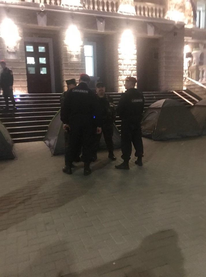 Sâmbătă seară zeci de oameni au fost aduși în fața mai multor instituții de stat, printre care Procuratura, Curtea Constituțională sau Ministerul de Interne unde le-au fost instalate corturi, relatează ProTV Chișinpu. Este vorba de membri sau simpatizanți ai Partidului Democrat, potrivit unimedia.info.