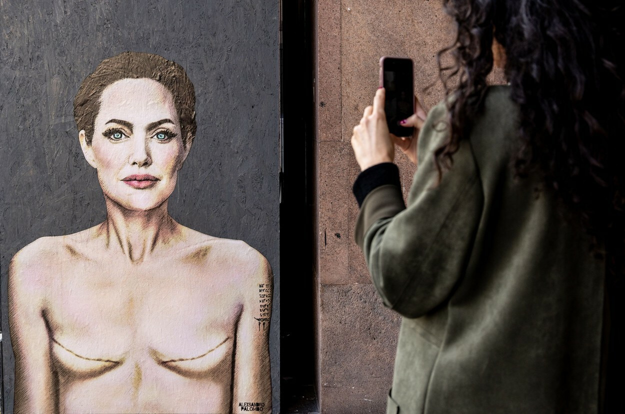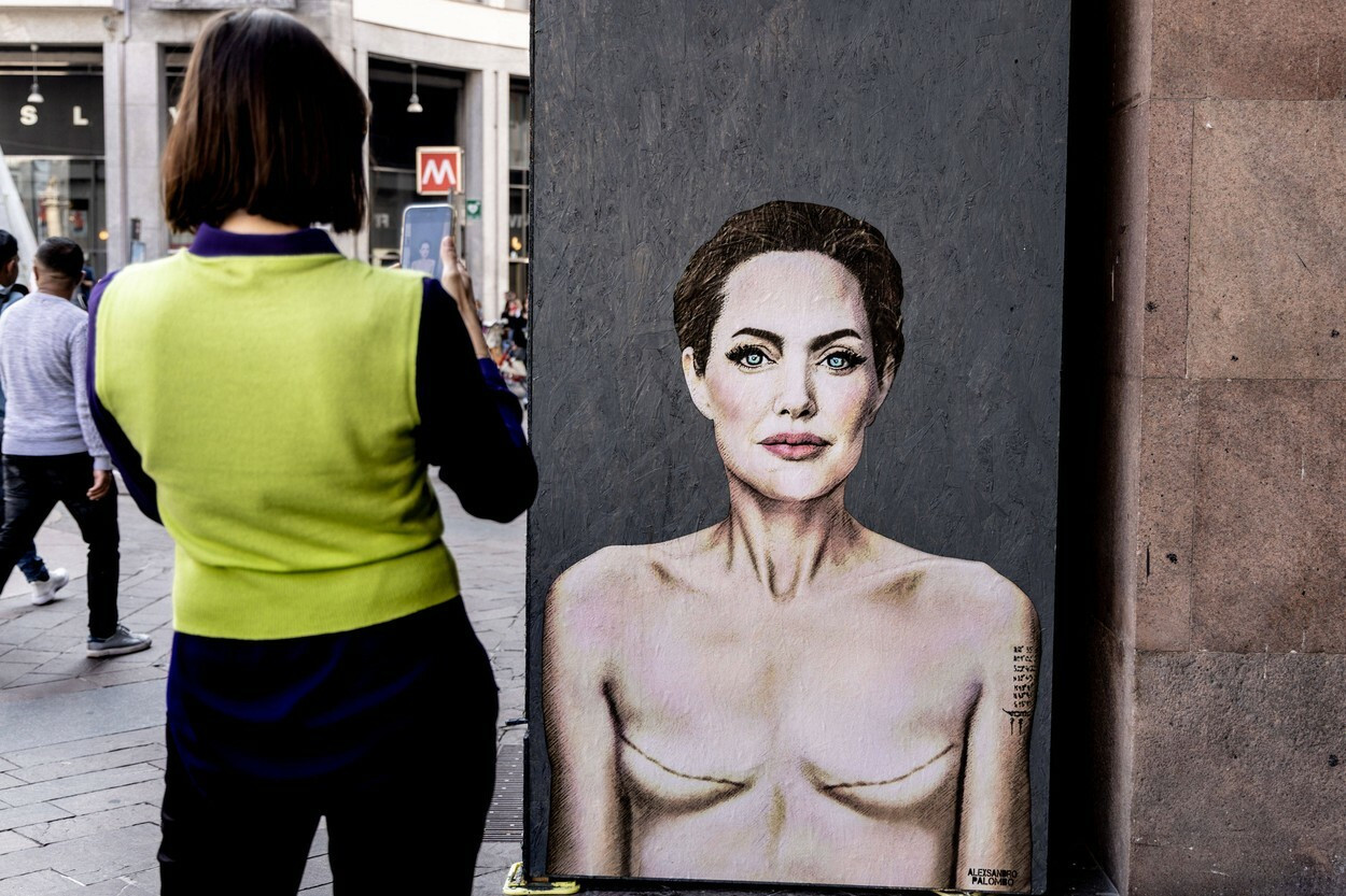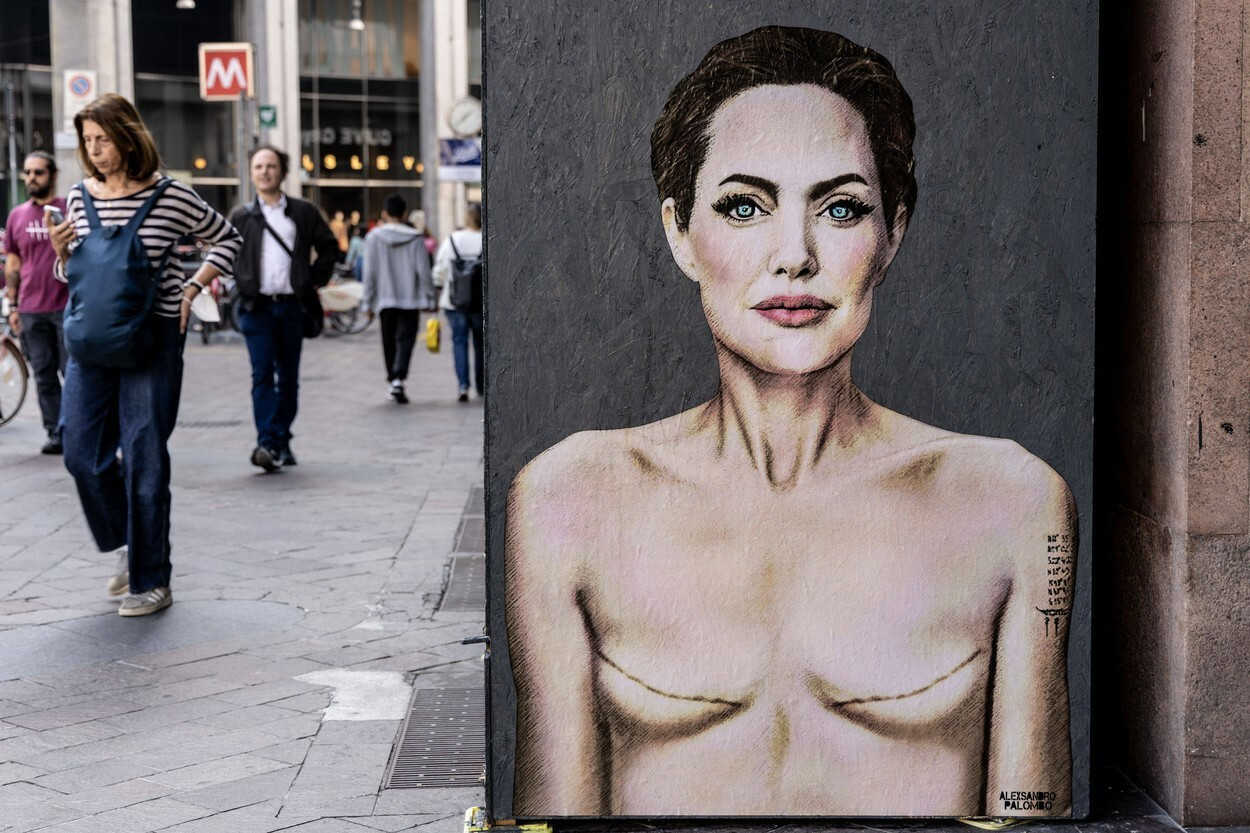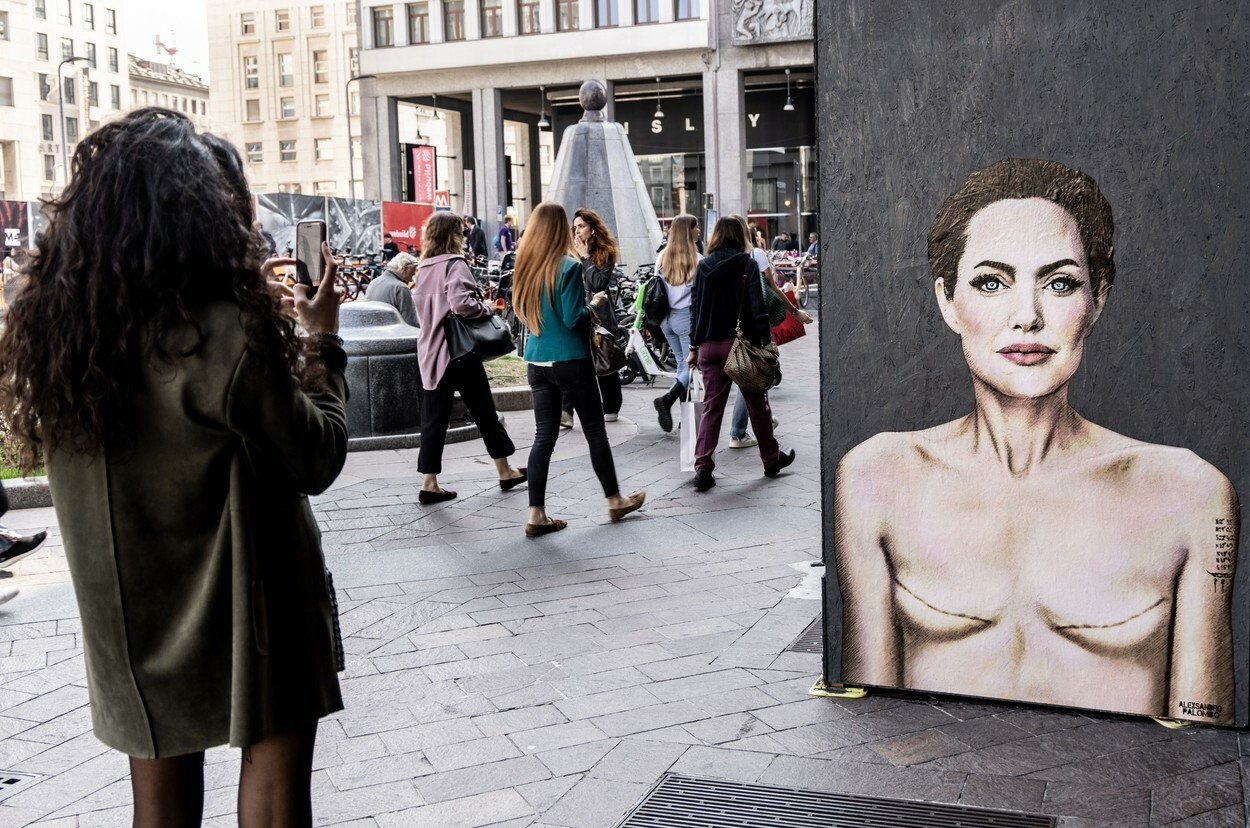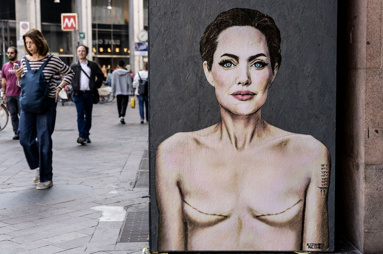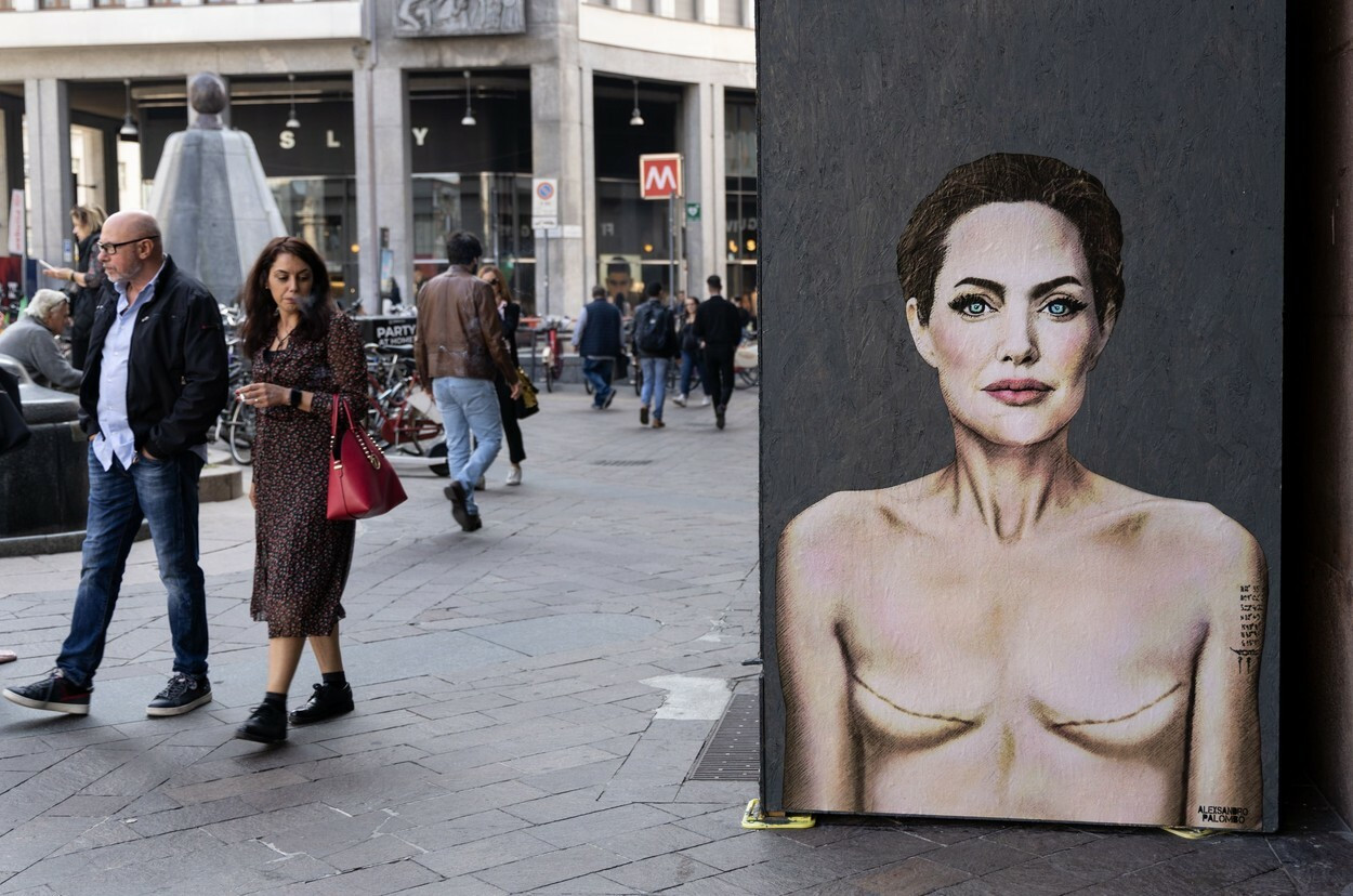 Cum a apărut Angelina Jolie pe un zid din Milano. Imaginea simbolizează un avertisment pentru femeile din întreaga lume. FOTO