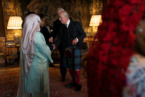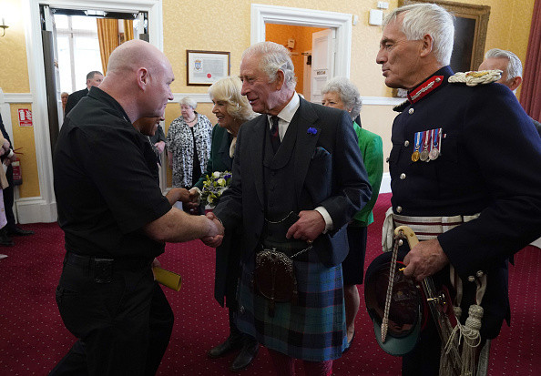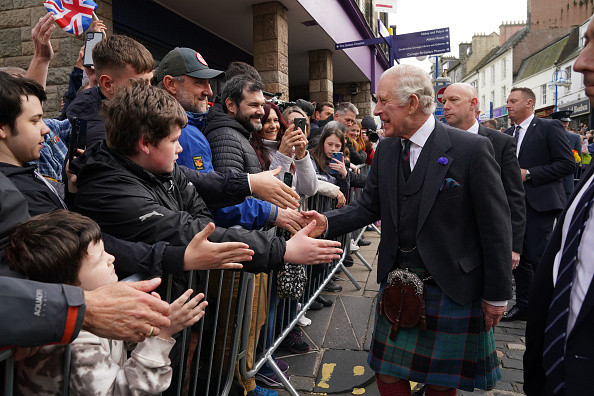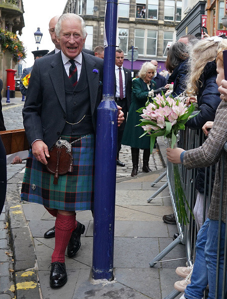 Îmbrăcat într-un kilt verde şi albastru şi cu şosete roşii, Regele Charles IIl le-a spus locuitorilor oraşului Dunfermline, care au venit să-l aplaude, că această întâlnire „i-ar fi bucurat inima mamei sale aşa cum o bucură şi pe a sa”.