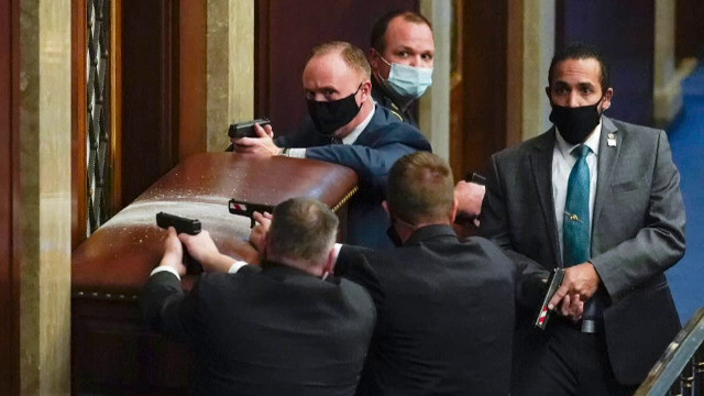 Imaginile filmate de un reporter Associated Press surprind momentul în care parlamentarii, unii cu fețele acoperite cu măşti de gaze, sunt scoși de forțele de ordine din sala de şedinţe. Printre cei evacuați de urgență se afla şi vicepreşedintele Mike Pence.