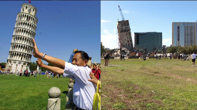 Asemenea turiştilor care vizitează turnul din Pisa, şi cei care vin să vadă construcţia rămasă în picioare în Dallas profită de ocazie pentru a se poza în posturi cât mai amuzante.