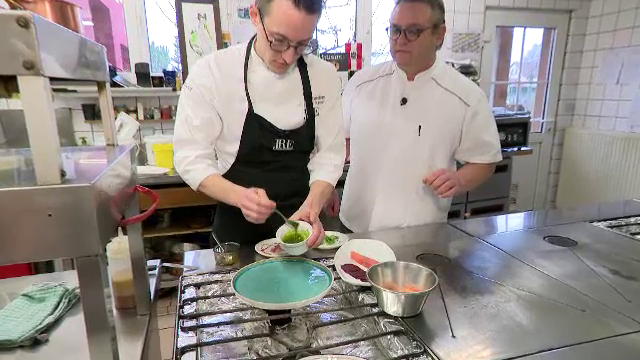 Lucas are 32 de ani şi, deşi a terminat inginerie, s-a născut în bucătărie. Conduce de 5 ani restaurantul situat pe drumul vinului din Alsacia construit de tatăl lui, Filip, în 1995. Ne-a gătit, încă sub supravegherea tatălui, o pulpă de raţă cu varză murată.