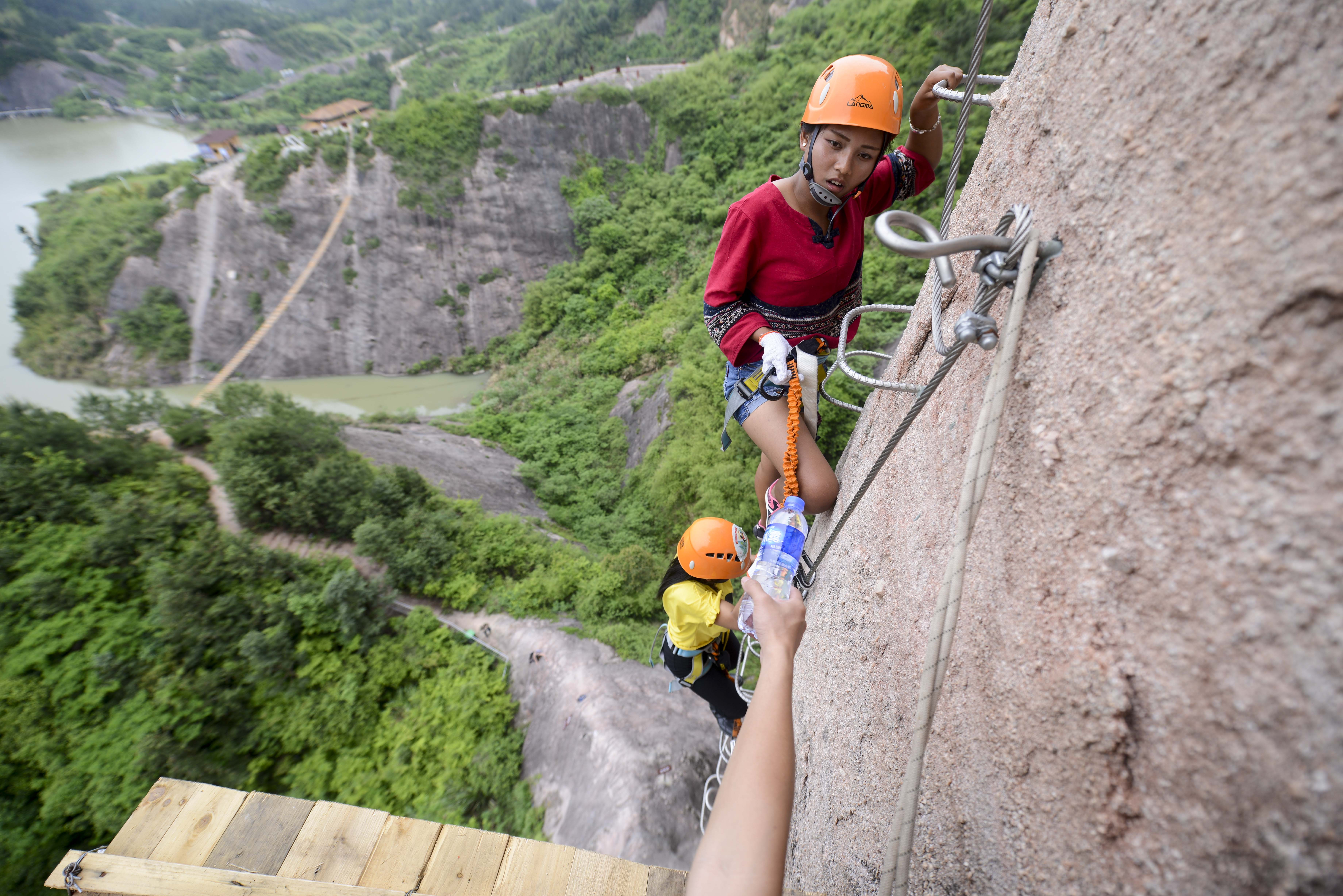 Călătoria până în vârf durează aproximativ 90 de minute pentru a fi parcursă, iar fiecare cățărător poate obține gratuit o sticlă de apă de la magazin, a declarat Song Huizhou, directorul general al Shiniuzhai, pentru China Daily.