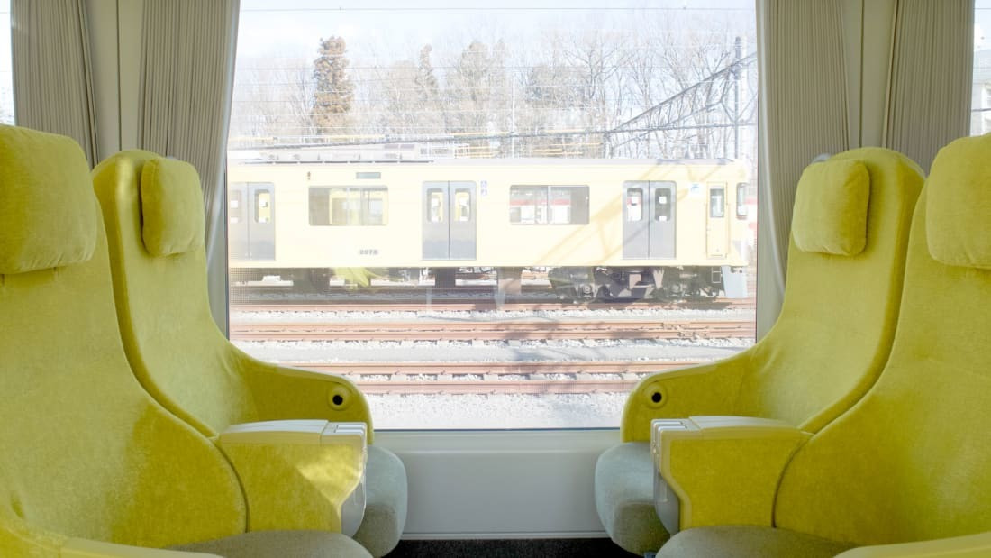 Realizat de arhitectul Kazuyo Sejima, trenul de mare viteză este argintiu la exterior, pentru a se potrivi perfect cu ruta muntoasă pe care o parcurge. Cu ferestre largi și canapele galbene, asemănătoare mai degrabă cu niște fotolii, pasagerii se simt în timpul călătoriei ca în propria sufragerie, scrie CNN.