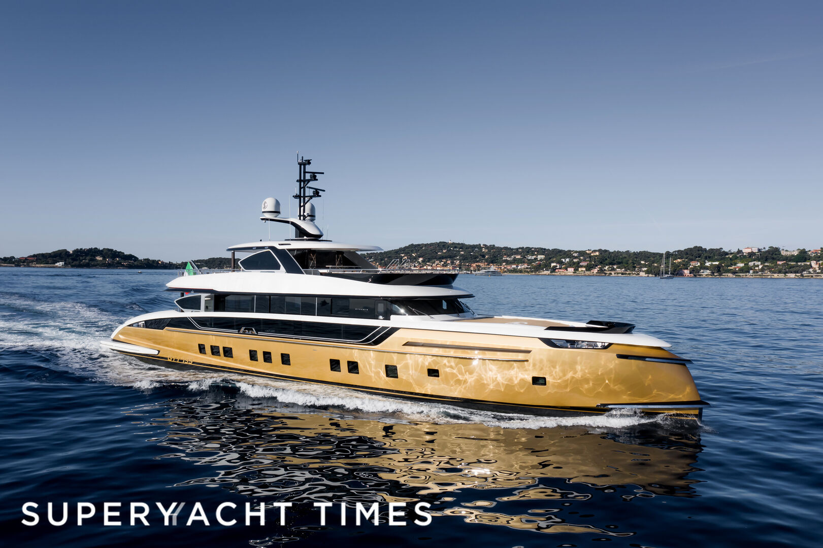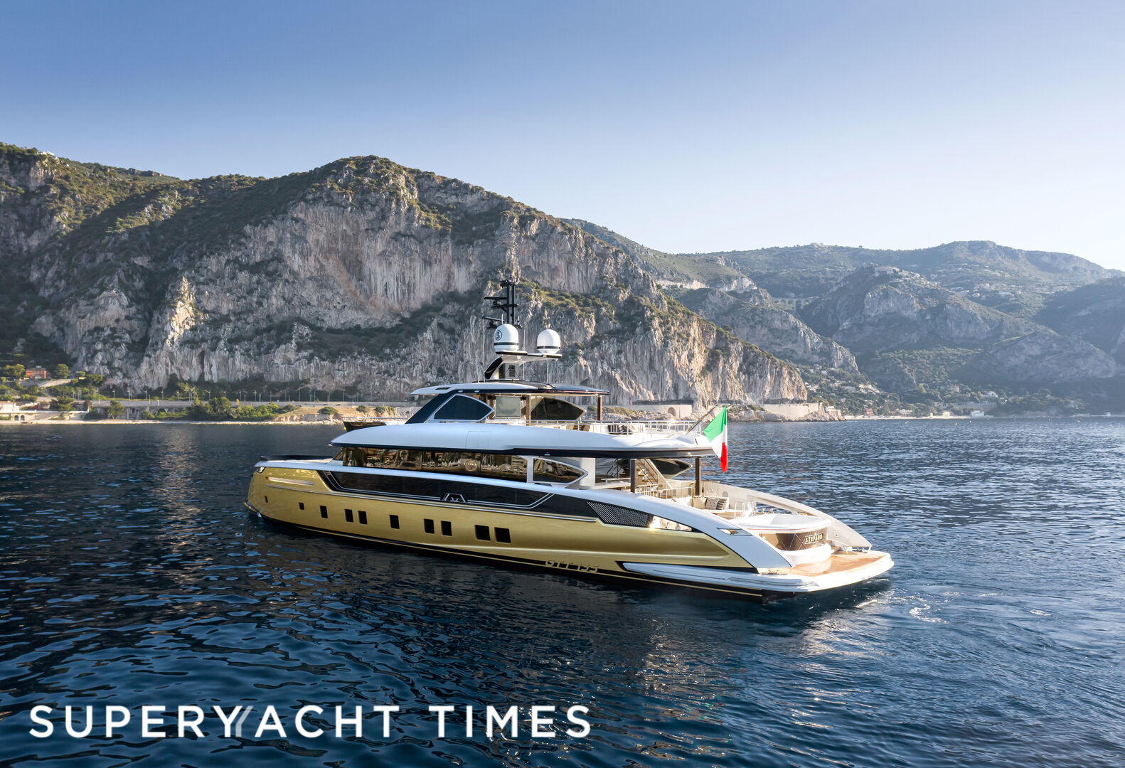 Yahtul ”este o navă de excepţie, definiţia însăşi a luxului, cam ostentativ”, are coca aurită, şi parcă ar aparţine unui personaj negativ din seria James Bond, scrie ziarul.
