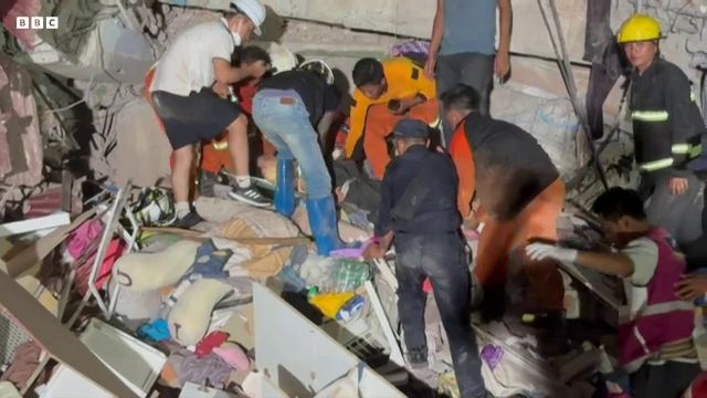 Cordelia Lynch: ”Din păcate, astăzi căutările s-au mișcat foarte greu, iar acum echipajele de salvare nu mai au lumină. Se pot vedea în spatele meu mai multe macarale. Acestea încearcă și cu ajutorul buldozerelor să mute o parte din dărămaturi. Dar trebuie să facă asta foarte, foarte încet, asta pentru că această clădire s-a prăbușit în doar câteva secunde din momentul în care s-a declanșat cutremurul, iar întreaga construcție e ca și cum ar fi fost presată”.