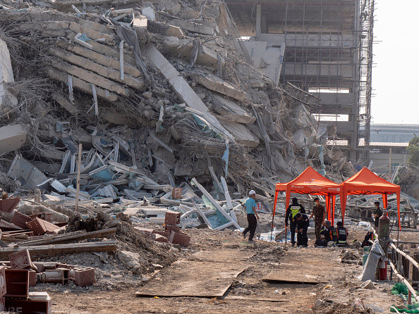 Institutul Național de Medicină de Urgență spune că 43 de persoane sunt în continuare blocate în clădire și alte șapte au fost rănite, dar au fost extrase.