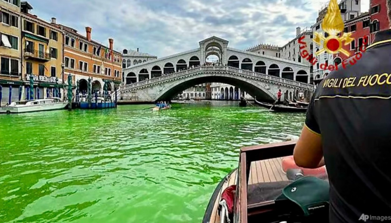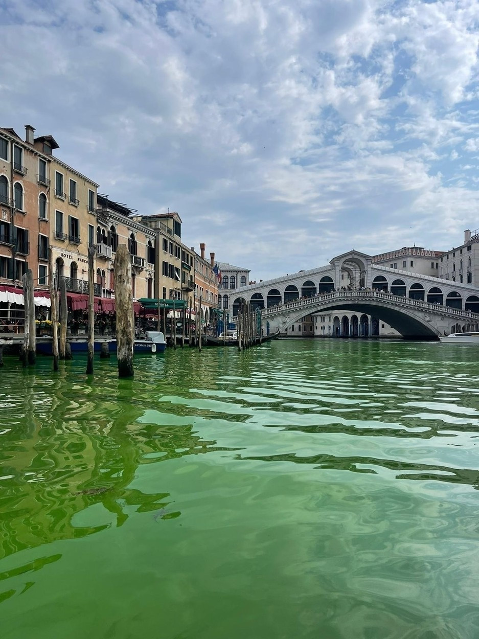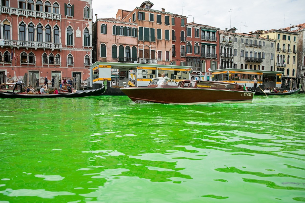 Transformarea apei dintr-o porţiune a celebrului Canal Grande din Veneţia, care a devenit verde fluorescent, a fost cauzată de prezenţa fluoresceinei, o substanţă non-toxică şi care este utilizată în general pentru testarea apelor uzate.