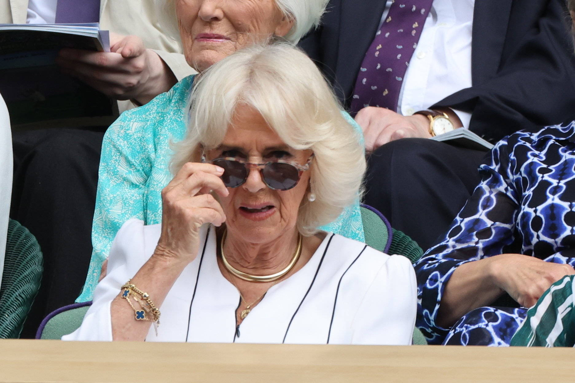 Camilla, în vârstă de 75 de ani, a stat în loja regală, unde a fost însoțită de sora ei, Annabel Elliot, și de Prințul Albert de Monaco. De la eveniment a lipsit regele Charles al III-lea.