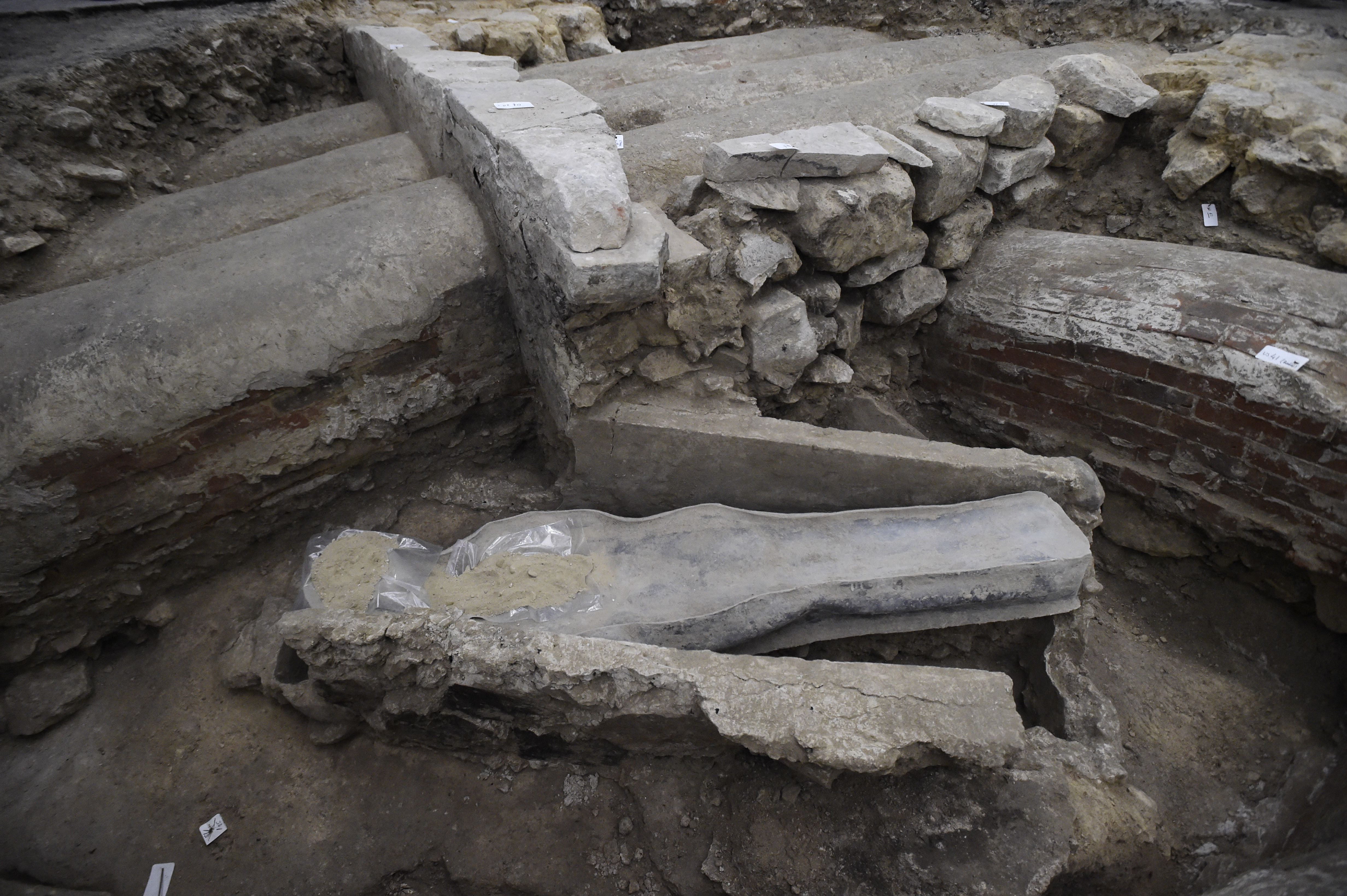 Printre morminte, "a fost dezgropat un sarcofag antropomorf de plumb, conservat în întregime".