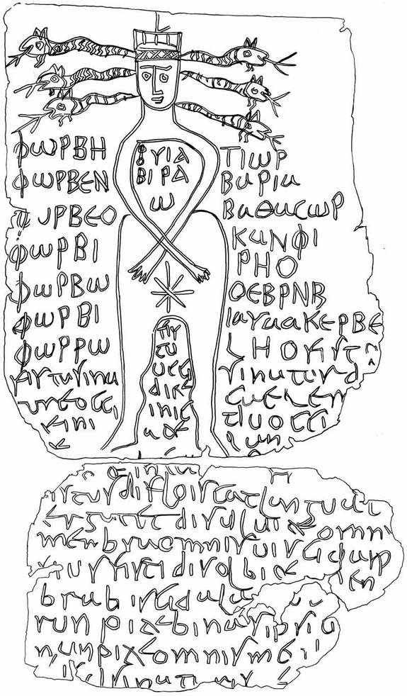 Oamenii de stiinta considera ca fragmentele din piatra au o vechime de peste 1.600 de ani. Textul se adreseaza unei zeitati demonice, care are in jurul capului cativa serpi, invocata pentru "a lega" un barbat mumificat si cu mainile legate. Numele victimei este "Porcellus".