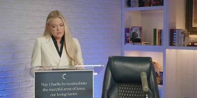 Într-o transmisiune live, stând lângă scaunul gol al soțului ei, pe care acesta îl folosea la înregistrările podcastului, ea a citat din Biblie și a vorbit despre dragostea lui pentru președintele Donald Trump, vicepreședintele JD Vance, Statele Unite și pentru cei doi copii ai cuplului, relatează BBC.