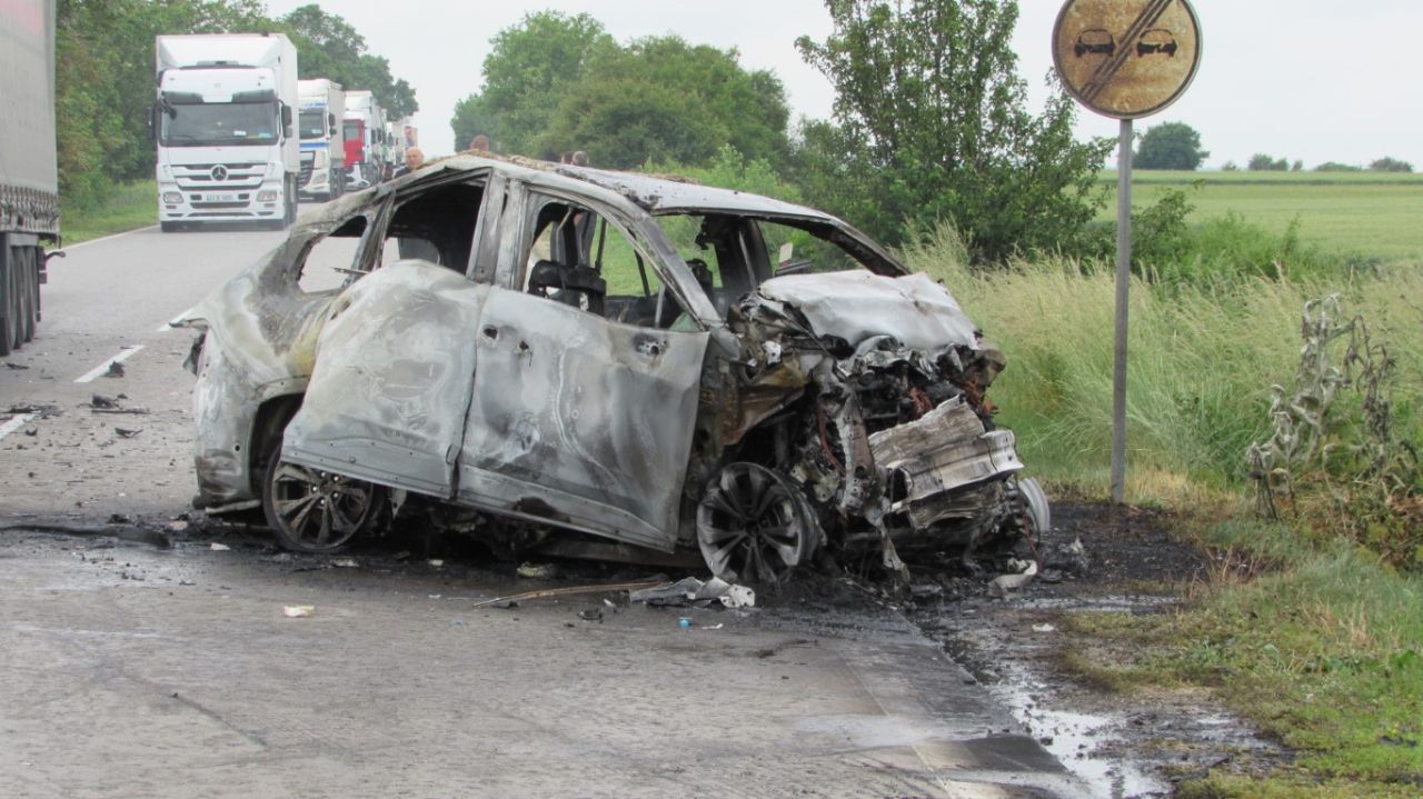 Doi români au murit carbonizați în mașină, după o depășire interzisă, în Bulgaria. Au lovit un TIR condus tot de un român