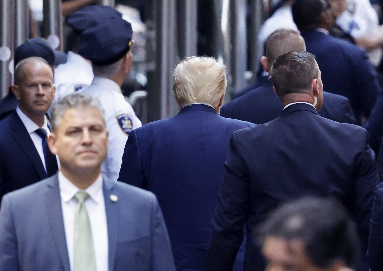 Donald Trump, 76 de ani, s-a predat, marți seara, în biroul procurorului districtual din Manhattan, New York, pentru procedurile uzuale persoanelor inculpate în dosare penale.