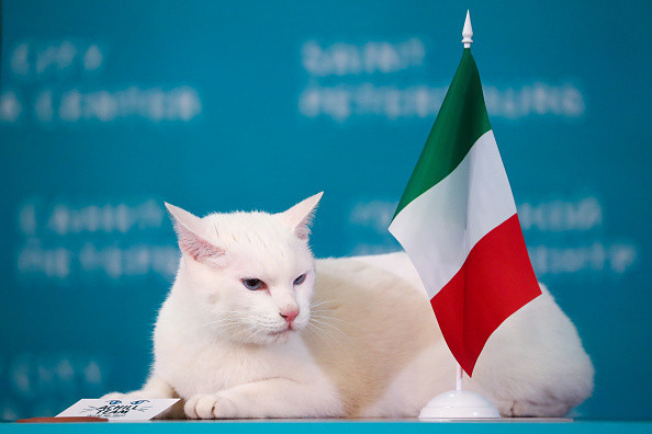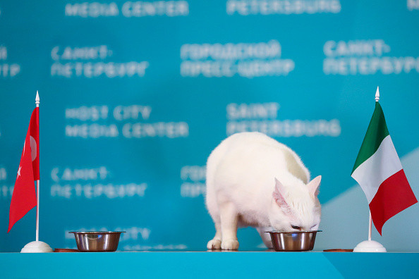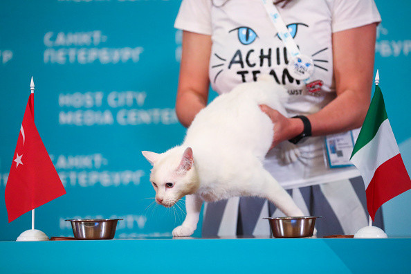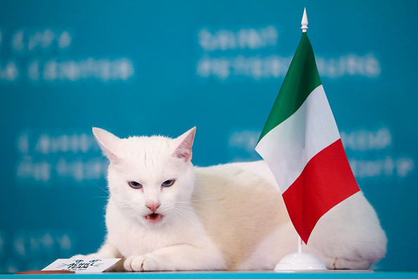 Cu un procent de acurateţe de 100 % la Cupa Confederaţiilor şi de 75 % la sută la Cupa Mondială din Rusia, motanul alb a aşteptat cu nerăbdare să-i fie servită mâncarea în două boluri de metal însoţite de steguleţele Italiei şi Turciei.