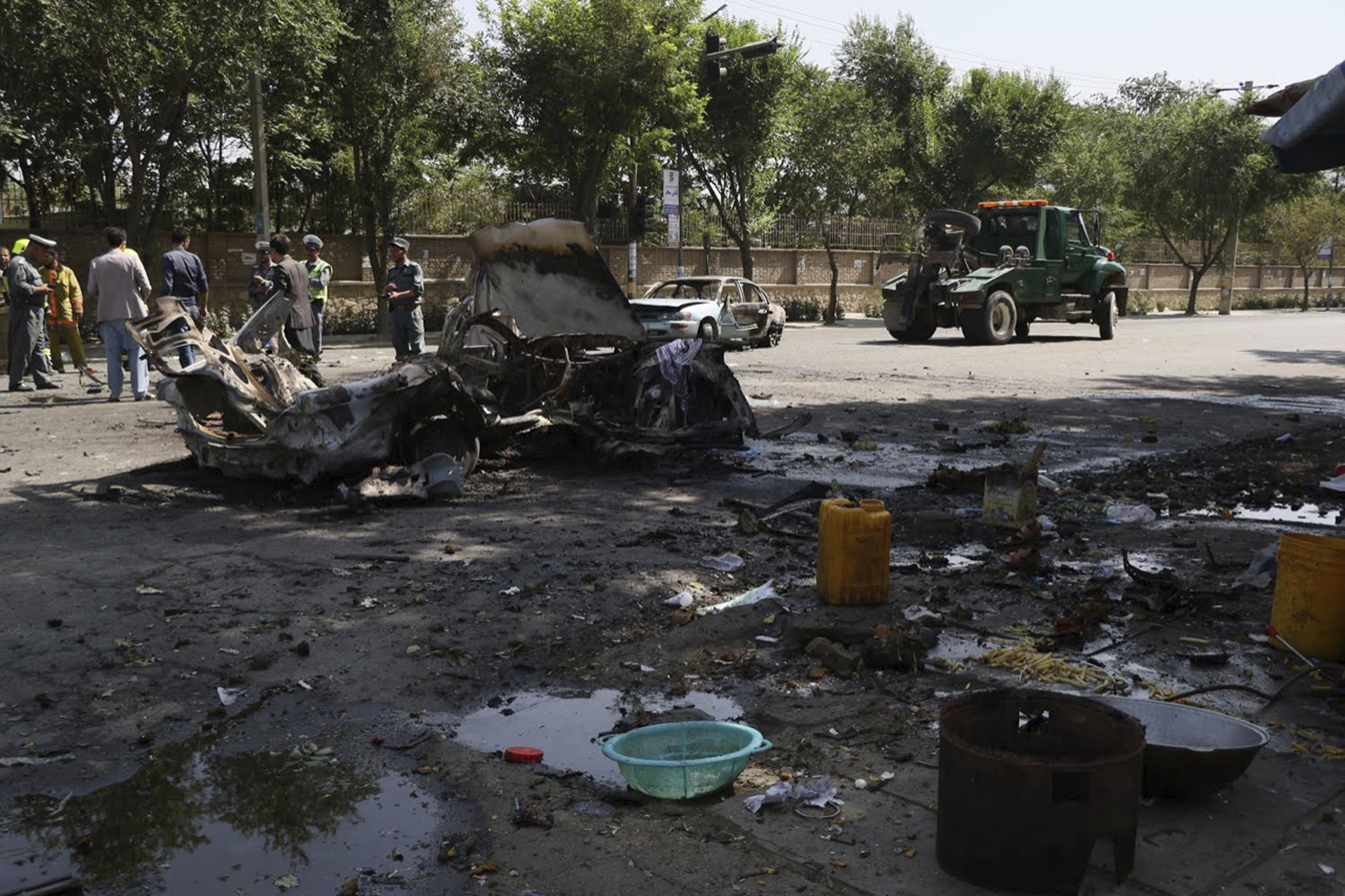În cursul dimineții, două mașini au fost incendiate, însă autoritățile nu au stabilit deocamdată dacă atacul a fost comis de un atacator cu bombă sau dacă bomba a fost detonată de la distanță, a explicat Ferdous Farmarz, purtător de cuvânt al poliției.