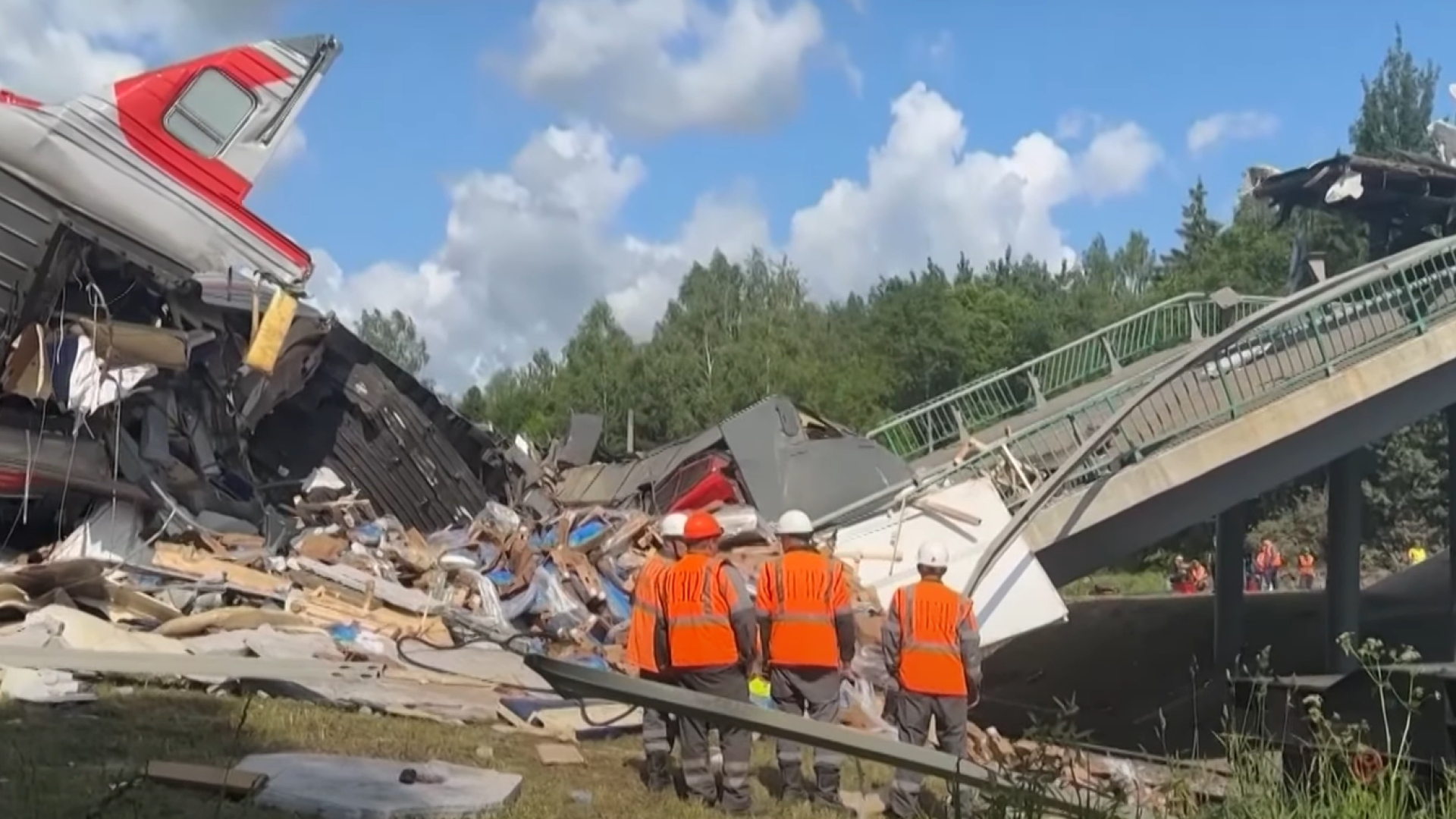 În regiunea Bryansk din Rusia, o explozie a provocat prăbușirea unui pod rutier pe o linie de cale ferată sâmbătă târziu, deraierea unui tren de pasageri care se îndrepta spre Moscova, potrivit autorităților ruse.