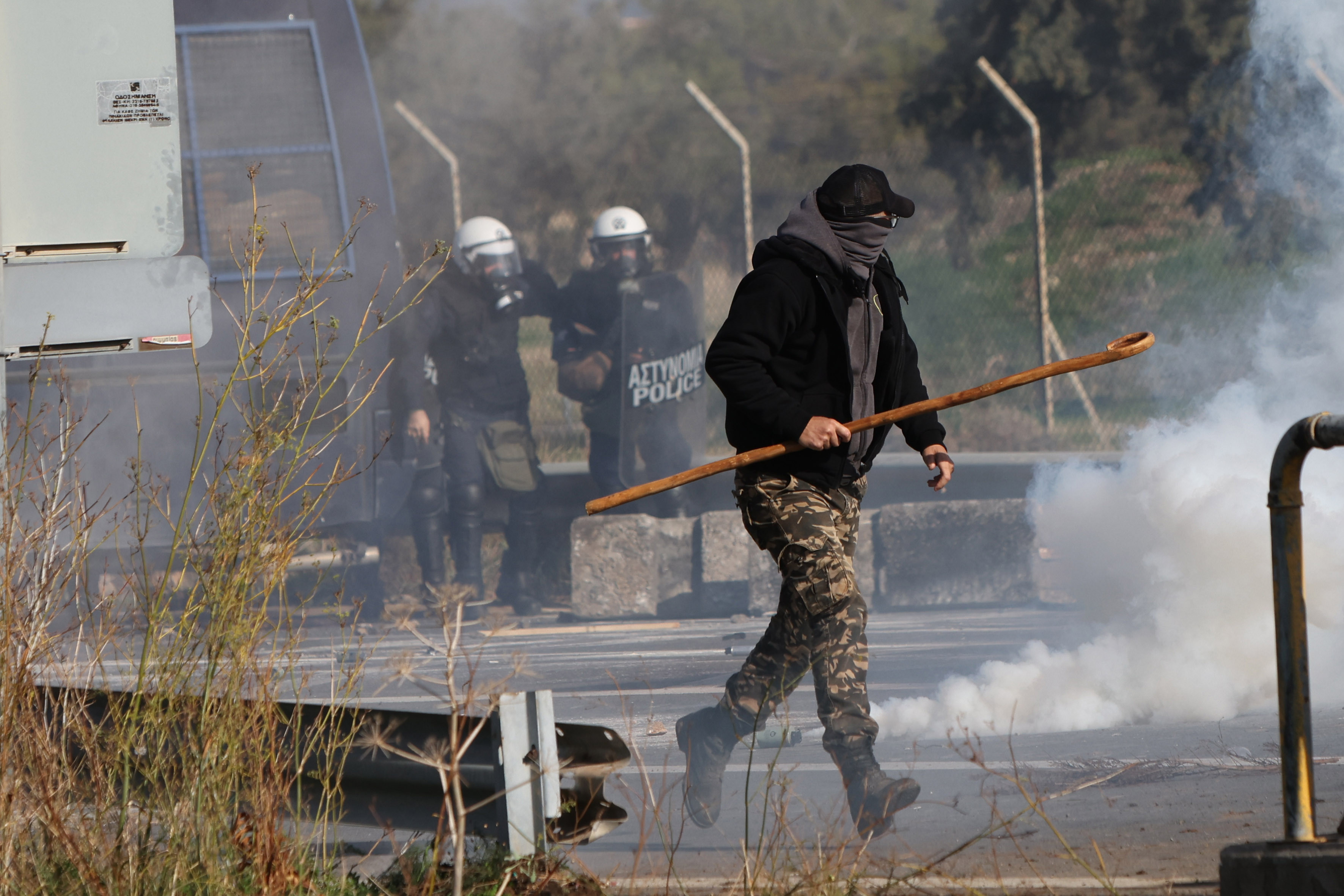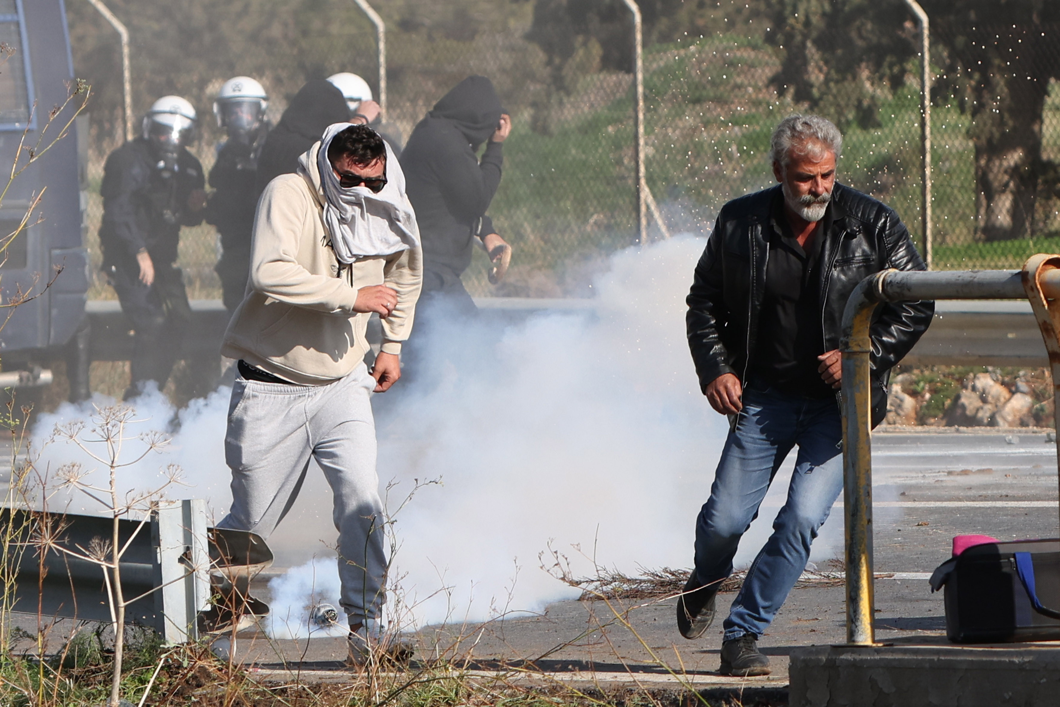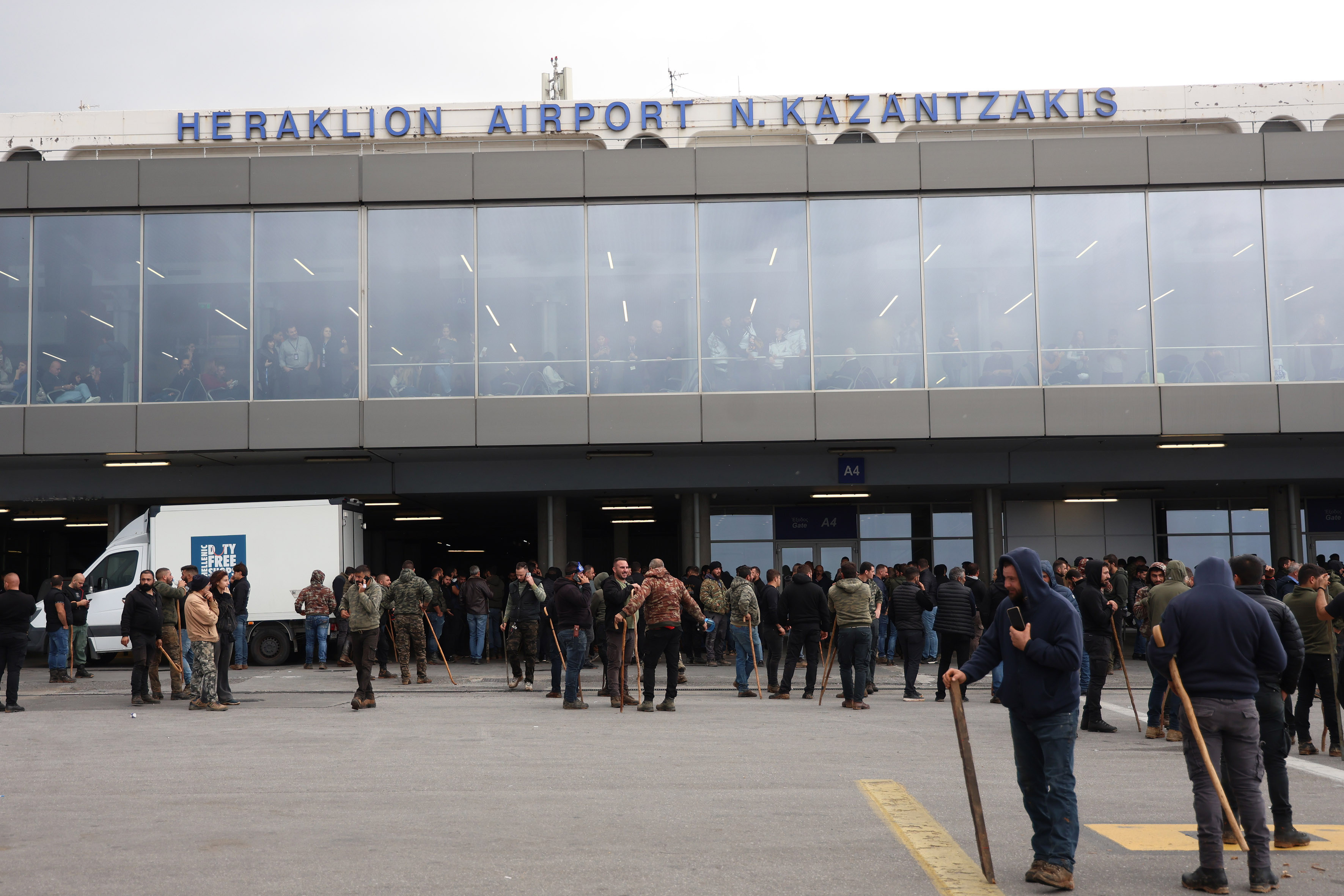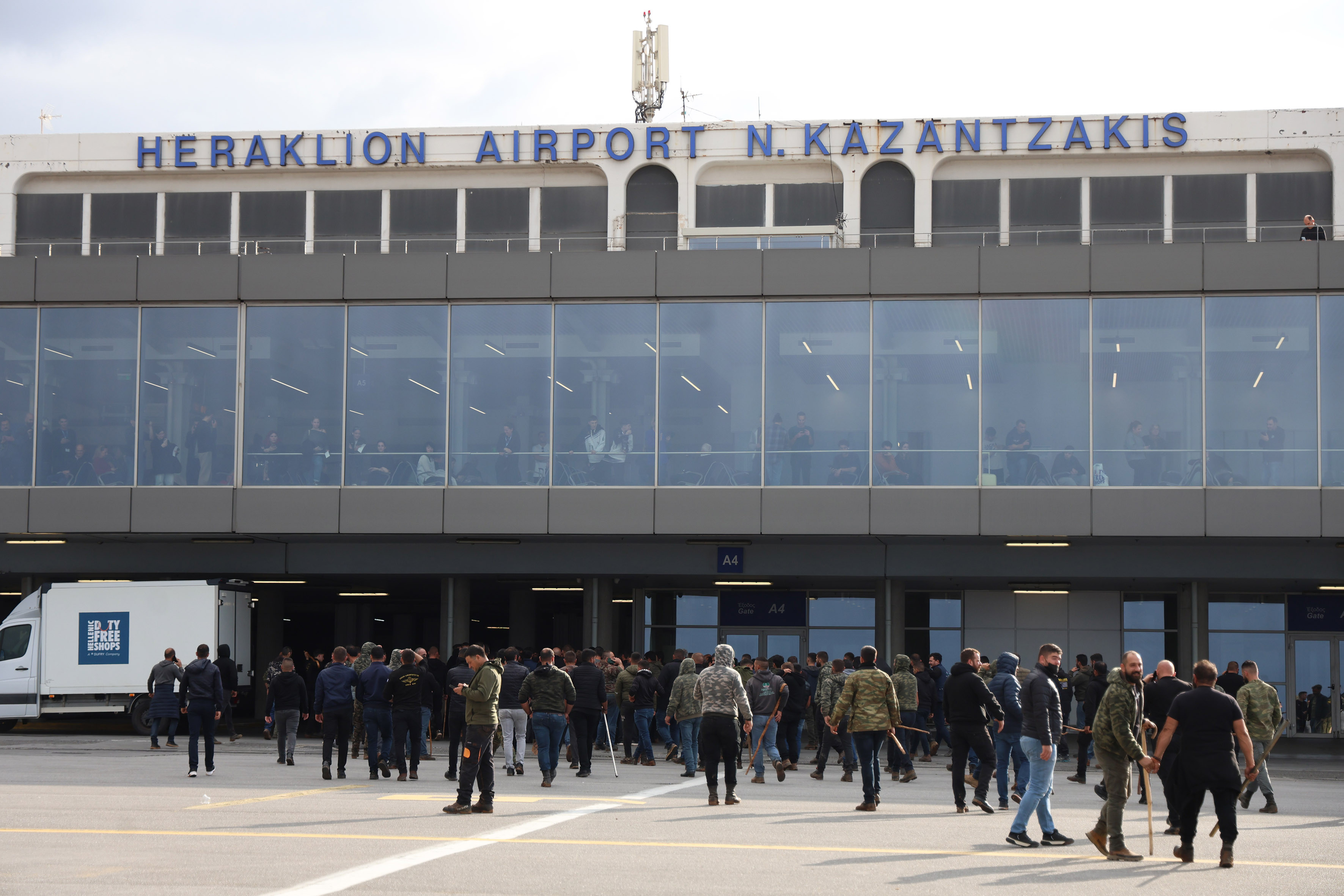 Un alt grup din apropierea aeroportului Chania din Creta a spart geamurile vehiculelor poliţiei cu ciomege de păstori şi pietre. Oficialii poliţiei au declarat că persoanele implicate au fost identificate şi vor fi puse sub acuzare.