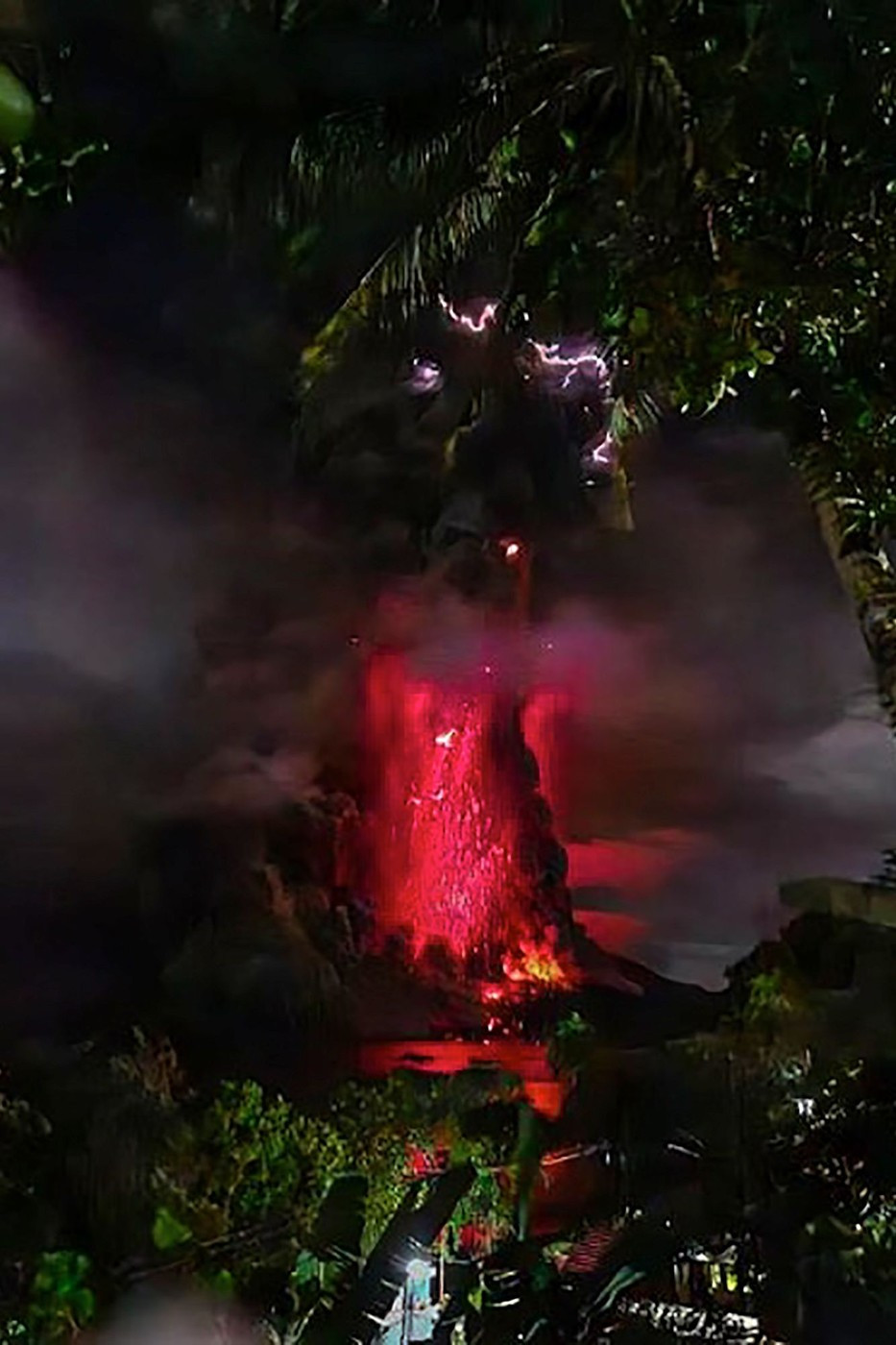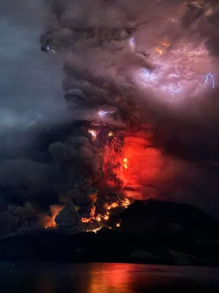 În timpul erupţiei spectaculoase de miercuri, vulcanul Ruang, situat pe o insulă îndepărtată din provincia Sulawesi de Nord, a expulzat în atmosferă o coloană de lavă, roci incandescente şi cenuşă până la altitudinea de trei kilometri.