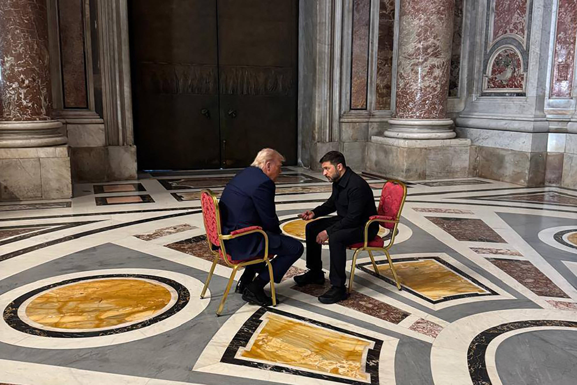 GALERIE FOTO. Imagini de la scurta întâlnire dintre Volodimir Zelenski şi Donald Trump, cu ocazia funeraliilor Papei Francisc