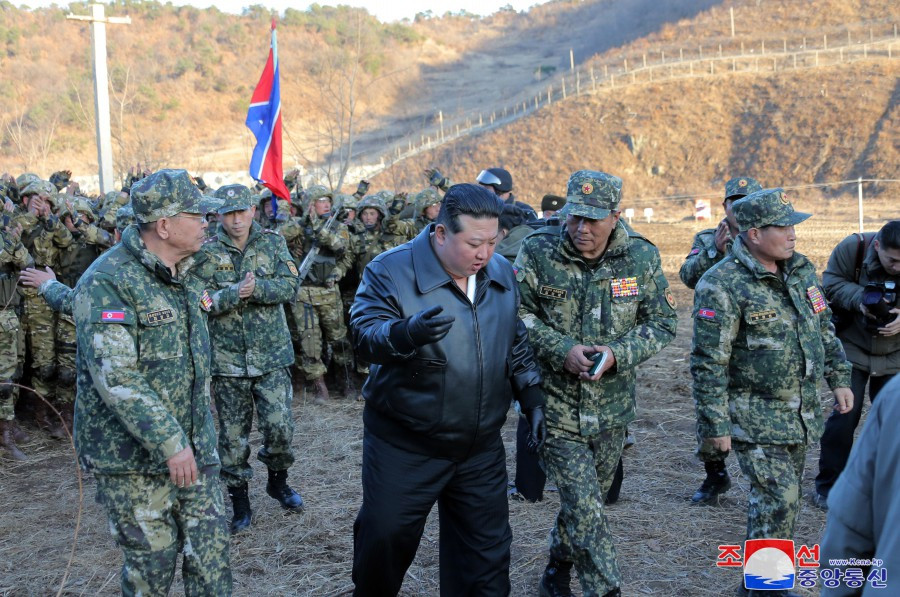 Purtând o jachetă de piele neagră, Kim Jong Un a vorbit cu soldaţi în uniforme de camuflaj şi puternic înarmaţi, a supravegheat exerciţii de tragere şi a inspectat arme, potrivit imaginilor publicate de agenţia de presă oficială KCNA, citată de AFP și preluată de Agerpres.