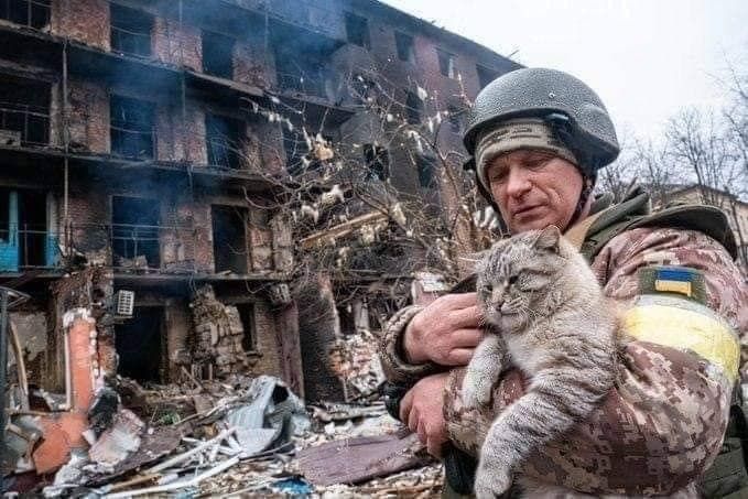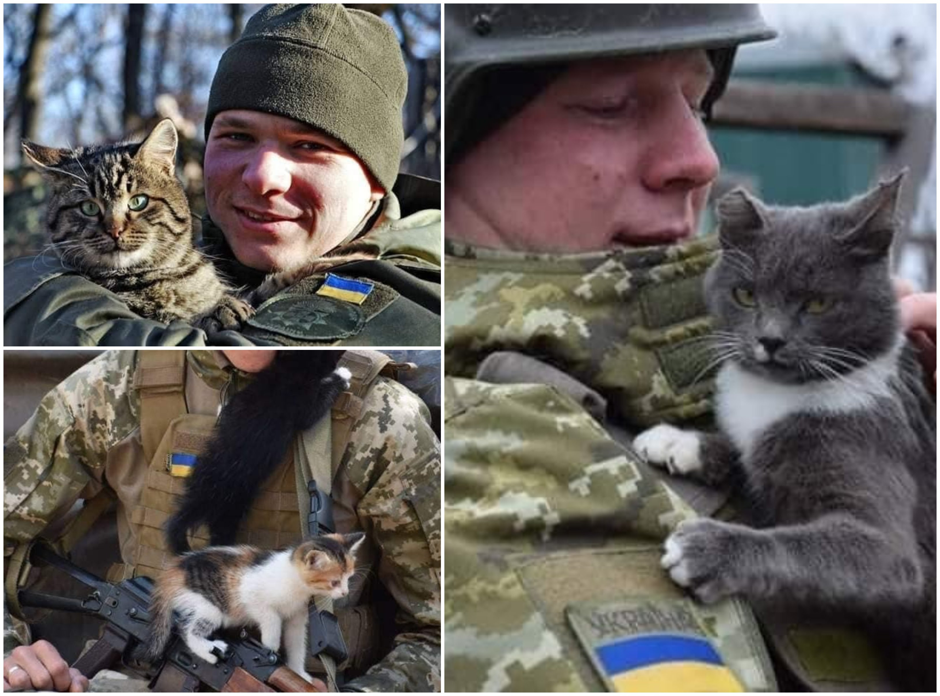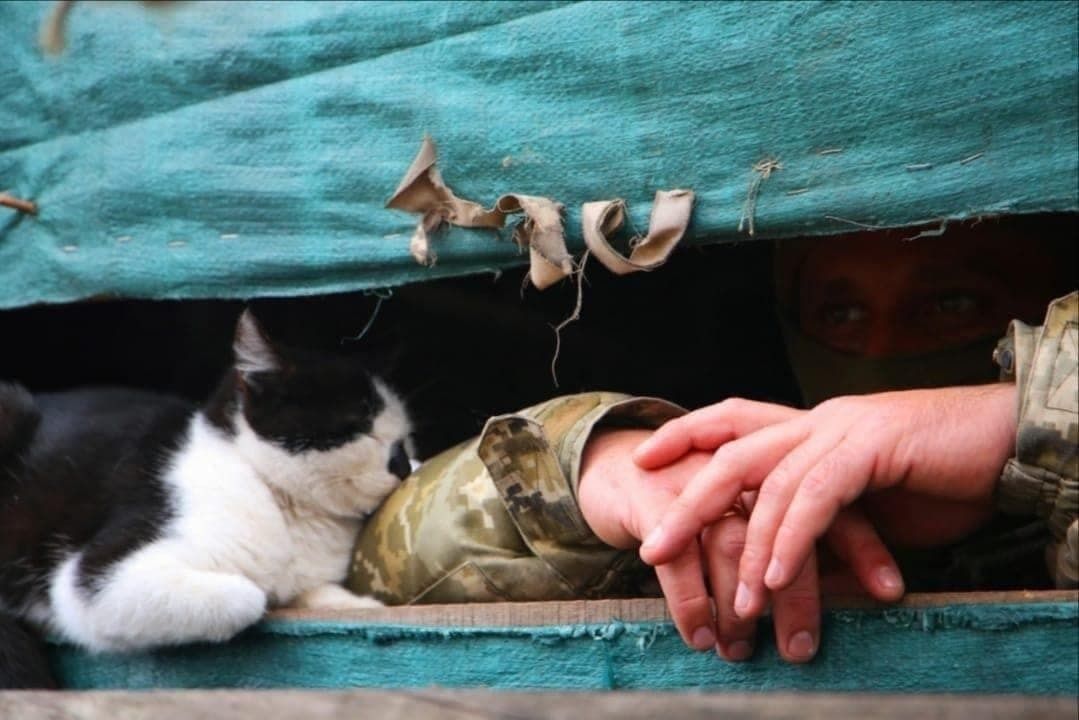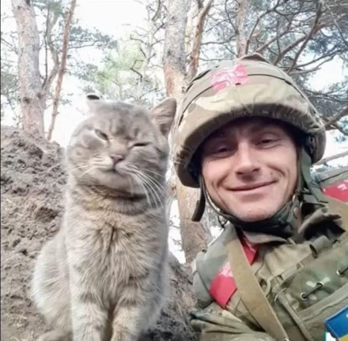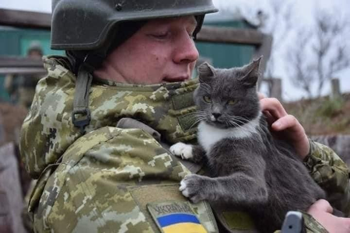 Pe diverse canale de pe Telegram au fost postate fotografii în care diferiți soldați s-au fotografiat cu pisici ... printre cartușe de război sau chiar pe câmpul de luptă.