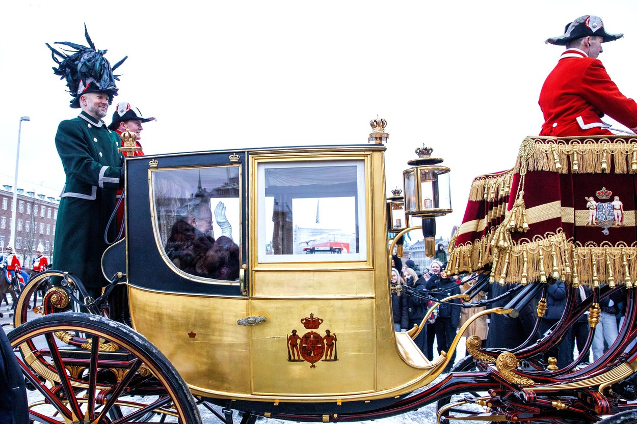 Regina s-a plimbat în fastuoasa trăsură regală poleită cu aur, pentru ultima dată în calitate de monarh, înainte de a lăsa tronul fiului său, prinţul moştenitor Frederik, săptămâna viitoare, relatează Reuters.