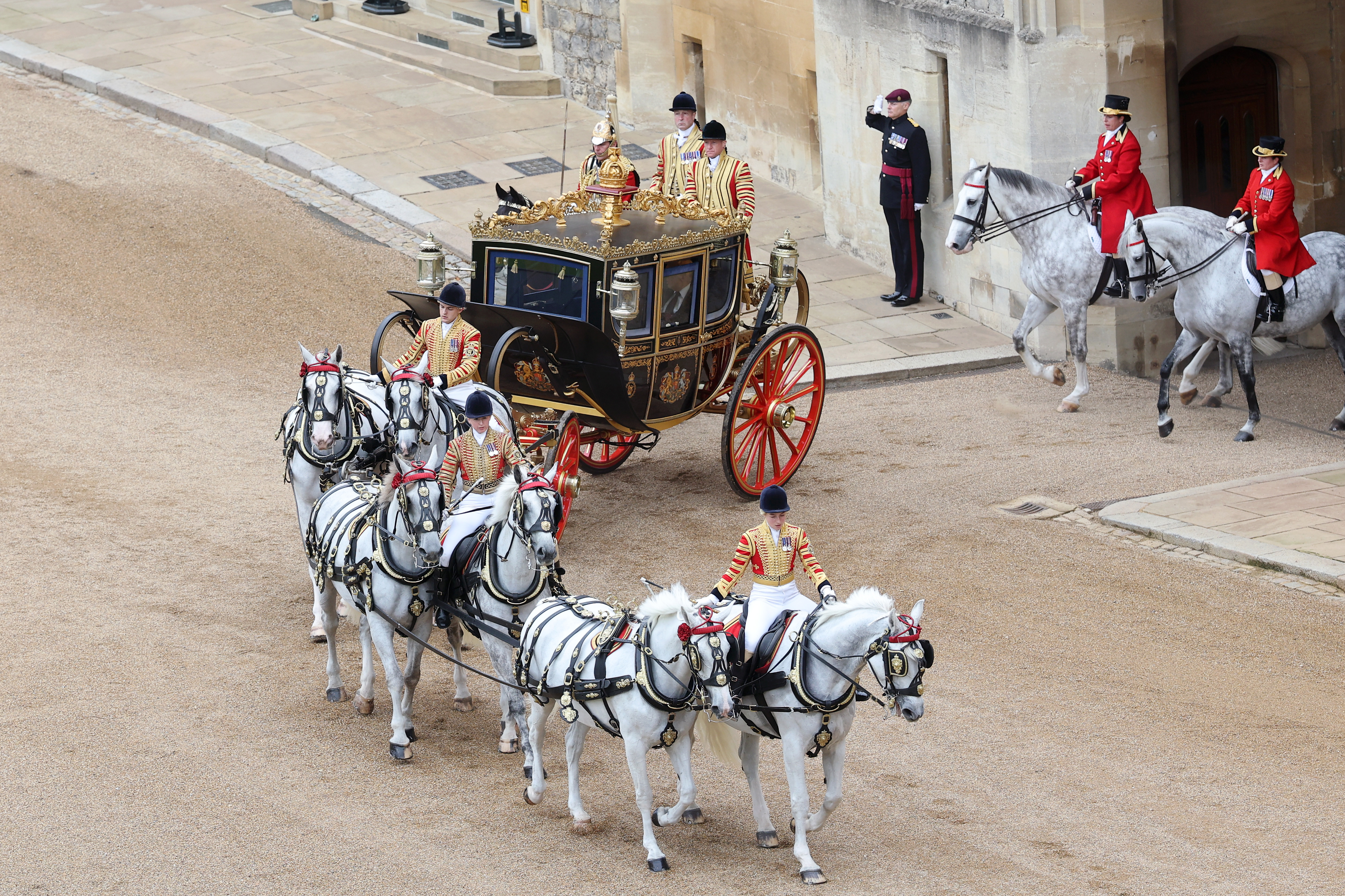 Au avut parte de tratamentul regal, cu covor roşu și o procesiune cu trăsuri, salve de tun, o paradă aeriană militară şi ulterior un banchet fastuos.