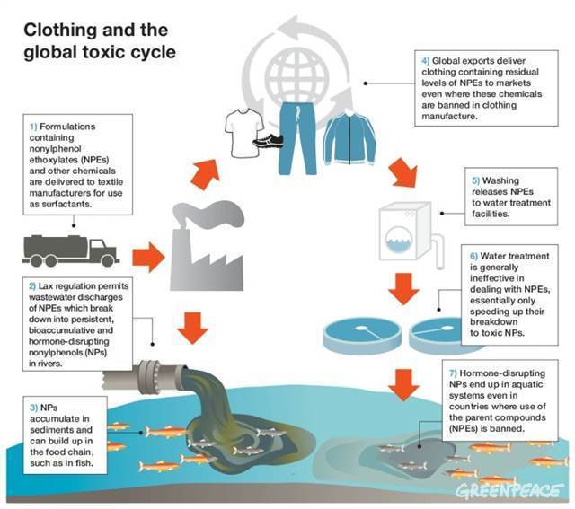 Nonilfenolul se acumuleaza in organismul viu, amenintandu-i fertilitatea si capacitatea de crestere. Aceasta nu este o problema doar in tarile in curs de dezvoltare, unde sunt produse aceste haine.