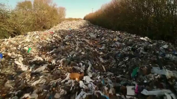 La marginea unei șosele din Marea Britanie a răsărit un munte de gunoaie. O anchetă a jurnaliștilor a scos la iveală că resturile au fost aruncate de mai multe firme care transportă ilegal deșeuri.