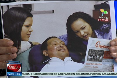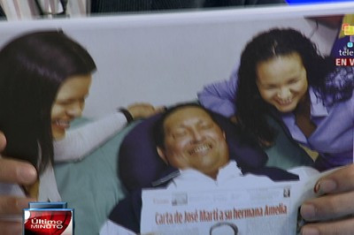 Oficialul guvernamental a prezentat primele imagini cu Chavez asezat pe patul de spital, in compania fiicelor sale.