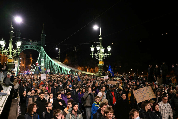 Marţi, mii de persoane au manifestat pe podul Elizabeta din oraş, protestând din nou faţă de legea care vizează interzicerea marşului anual Pride al comunităţii LGBTQ+. Legea este considerată de critici ca făcând parte dintr-o reprimare mai largă a libertăţilor democratice înainte de alegerile parlamentare din 2026.