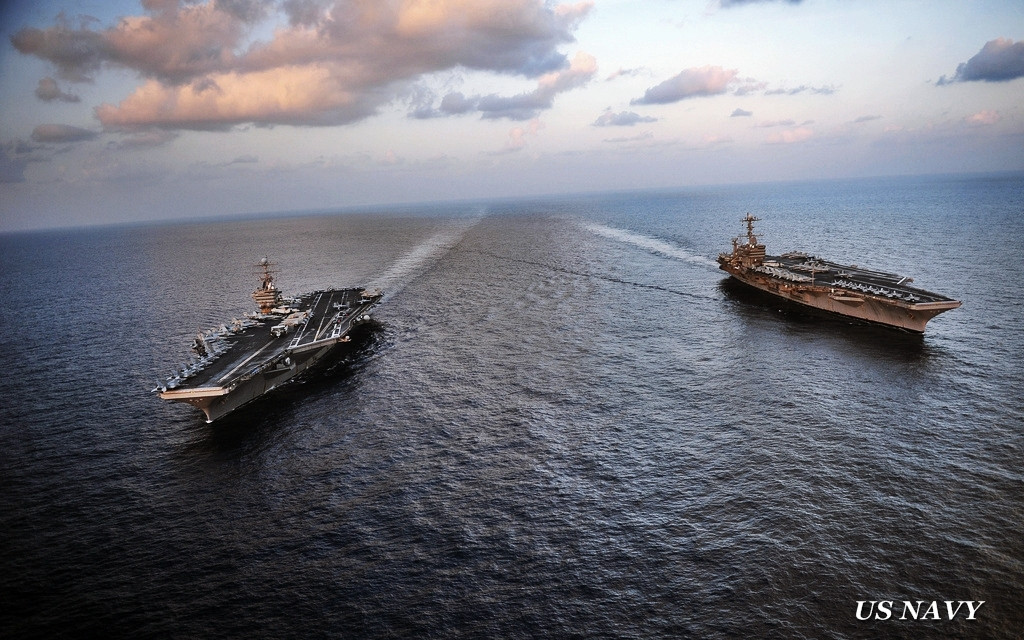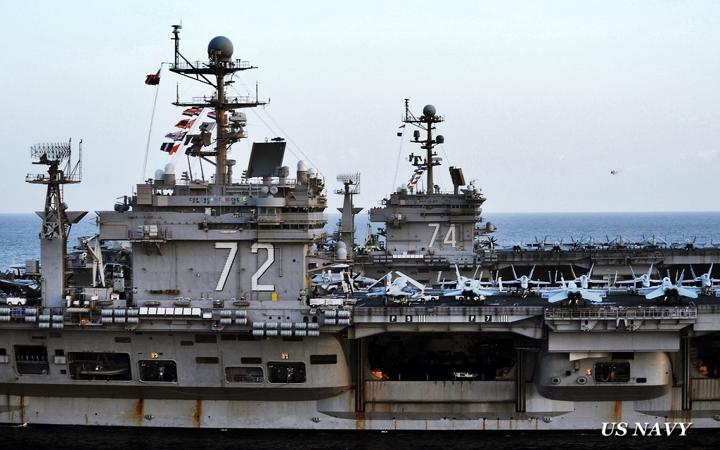 Acestea sunt doua dintre cele zece portavioane care au la bord incarcatura nucleara de clasa Nimitz, aflate acum in serviciul Marinei SUA. Au ajuns in stramtoarea Ormuz, locul in care tensiunea creste de la o ora la alta.