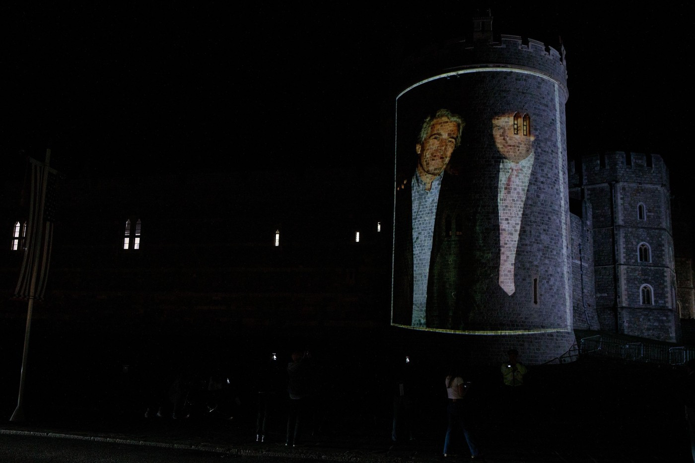 Imagini cu Trump și Epstein, proiectate pe Castelul Windsor înaintea vizitei oficiale. Patru activiști, arestați. FOTO