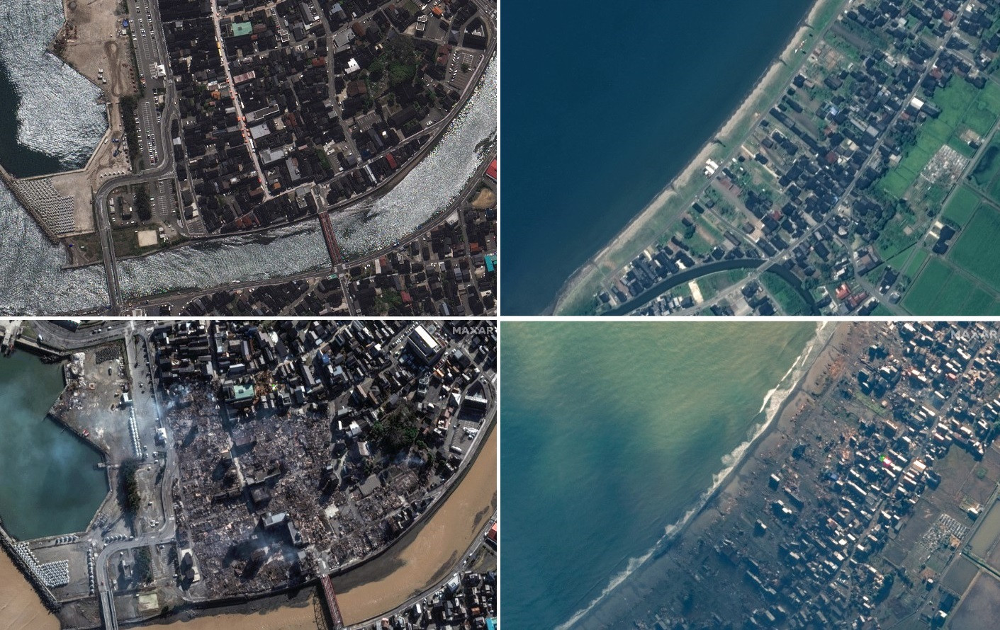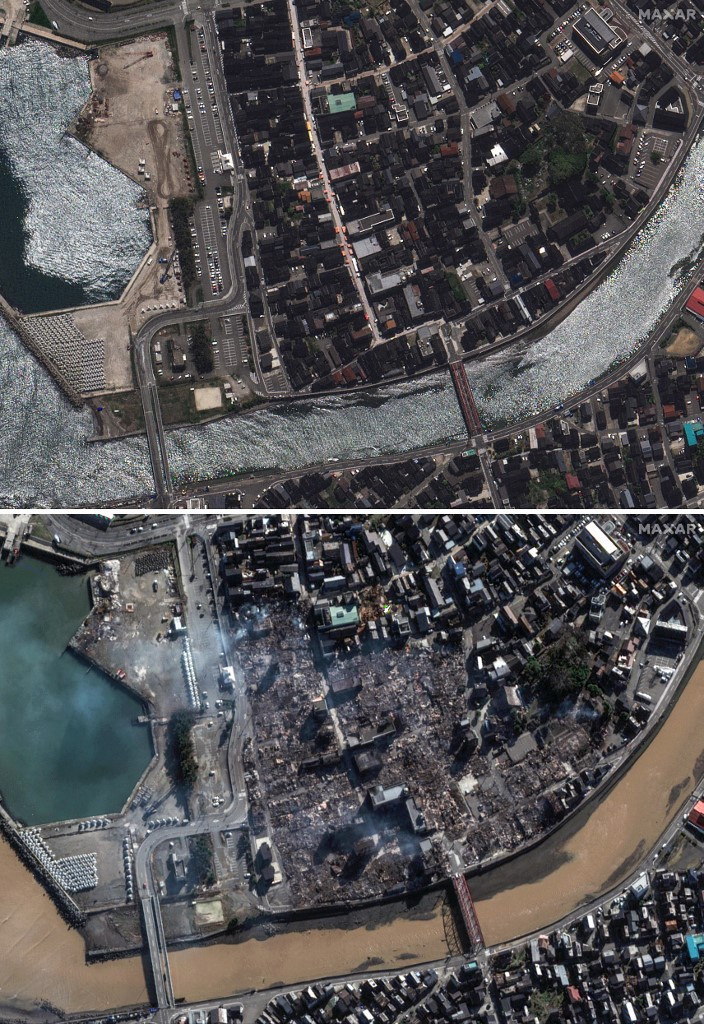 Imaginile din satelit arată distrugeri masive pe coasta de vest a Japoniei și în interiorul orașelor, după ce seria de cutremure puternice, potrivit Business Insider.