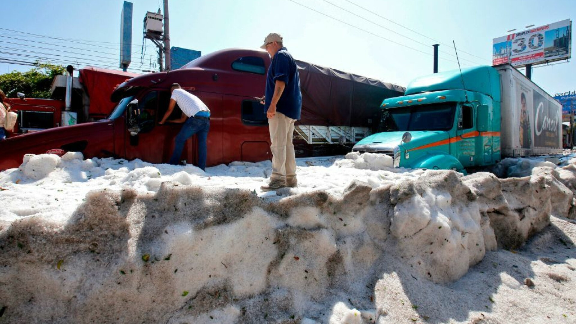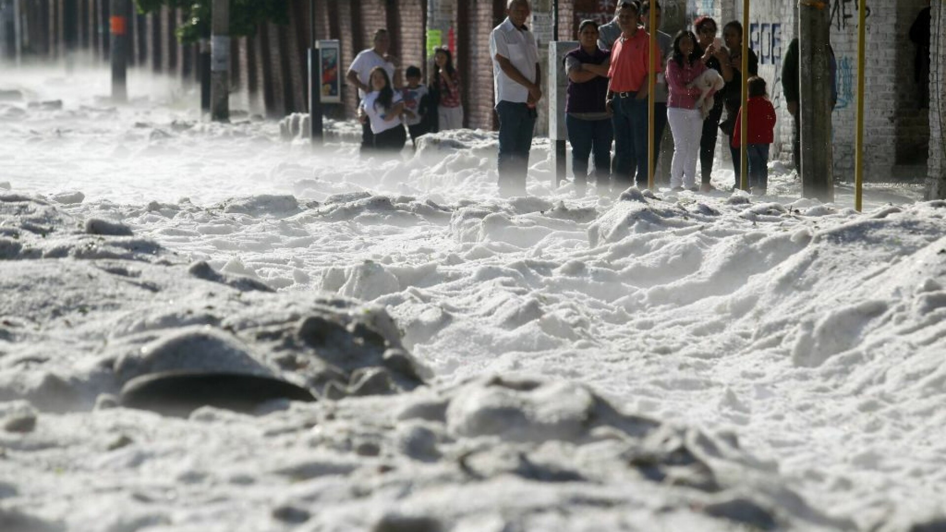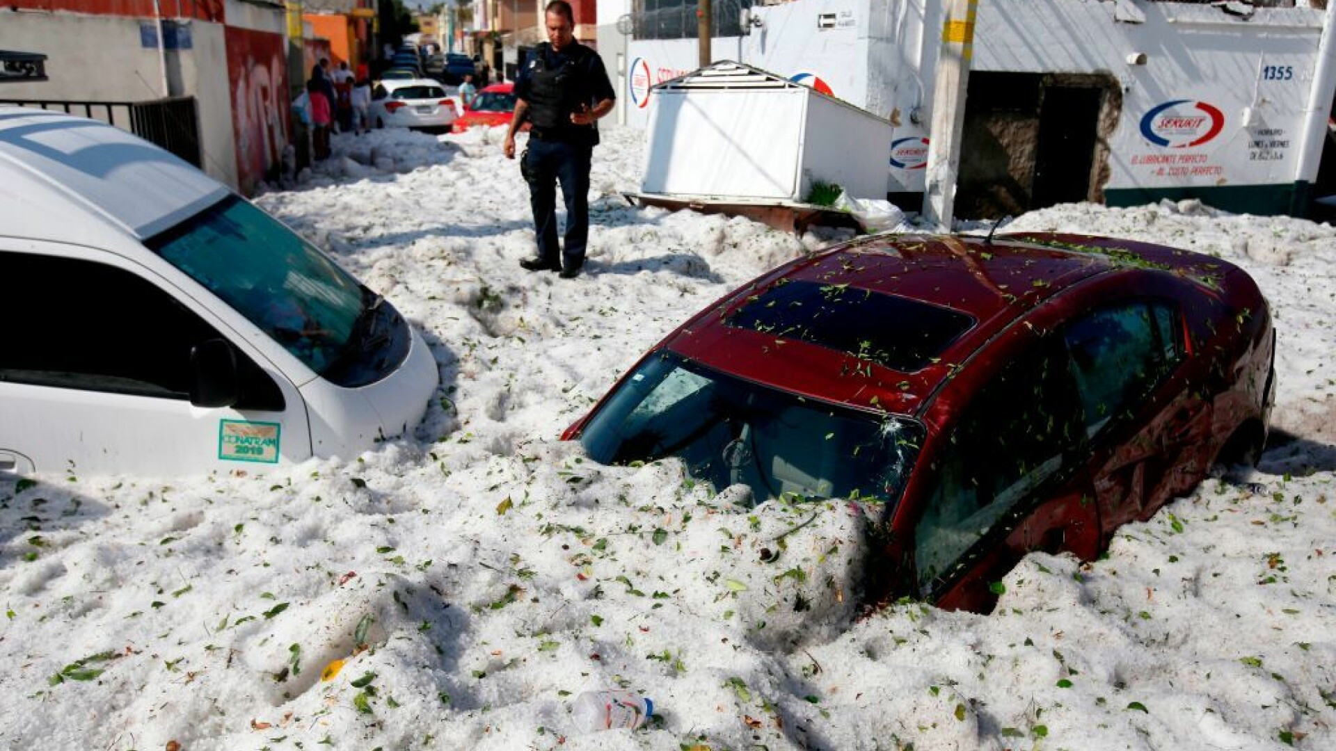 Șase suburbii din orașul mexican Guadalajara au fost acoperite cu un strat gros de gheață după o furtună puternică, în care a plouat inclusiv cu grindină.