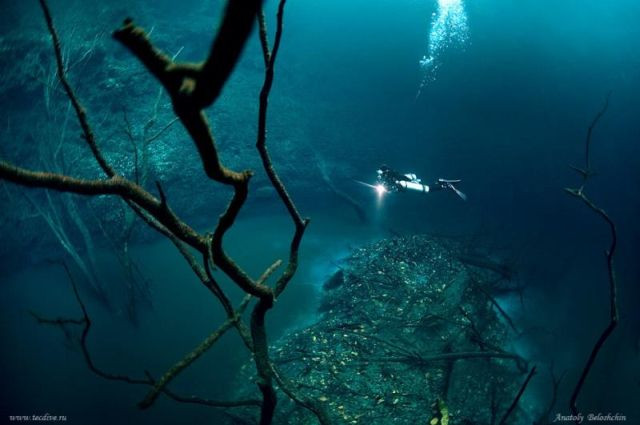 Pozele uluitoare au fost facute in pestera Cenote Angelita ("Micul Inger"), din Mexic, de scafandrul profesionist Anatoly Beloshchin.