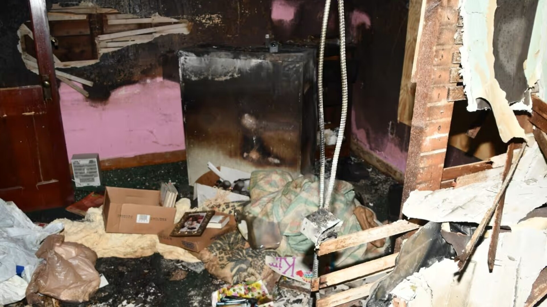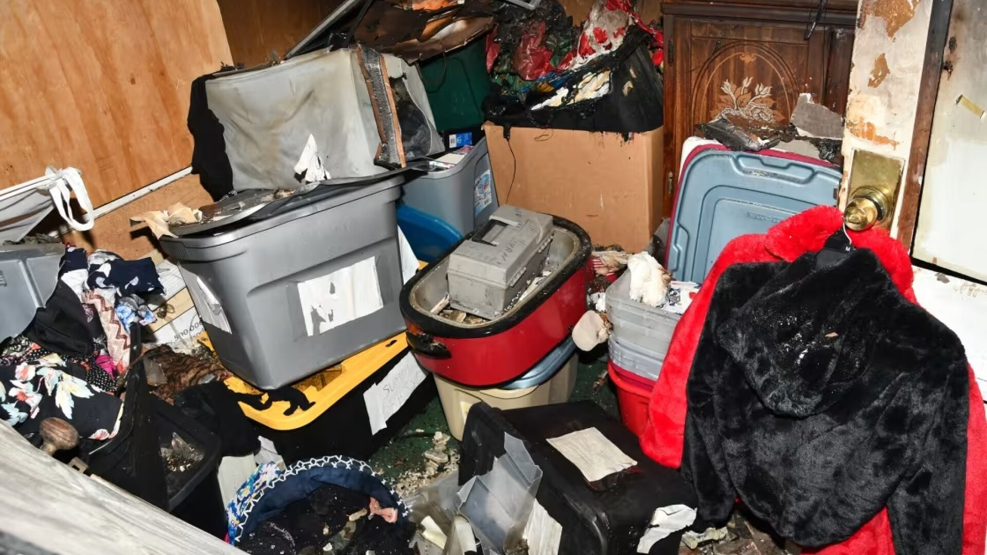 Noi fotografii din interiorul locuinței arată o imagine sumbră a vieții din spatele ușilor închise de la reședința de pe Blake Street: camere pline de obiecte, pereți acoperiți de fum și distruși de incendiu și uși cu încuietori pe exterior.