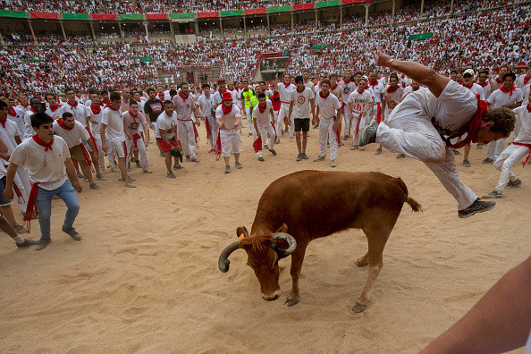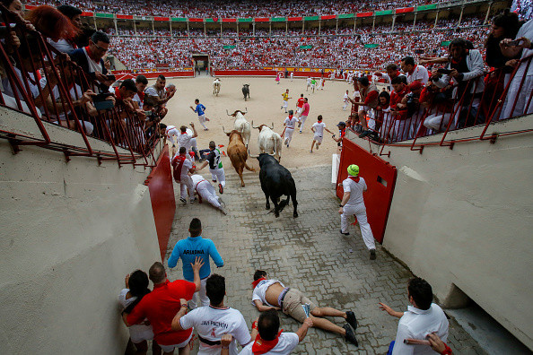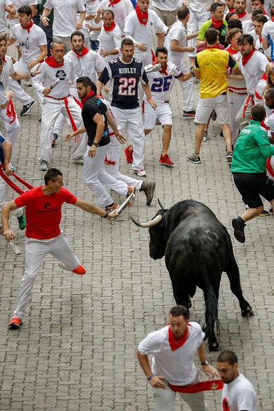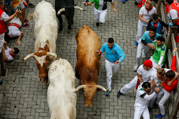 Timp de o săptămână, în fiecare dimineaţă la ora locală 08:00, sute de tineri ("mozos") în cămăşi şi pantaloni albi şi purtând eşarfe şi curele roşii încearcă să se apropie cât mai mult posibil de cei şase tauri de luptă - încadraţi de şase boi însoţitori - în timpul acestei curse inedite, care se încheie în Arena din Pamplona, unde taurii sunt ucişi în cursul după-amiezii de toreadori spanioli.