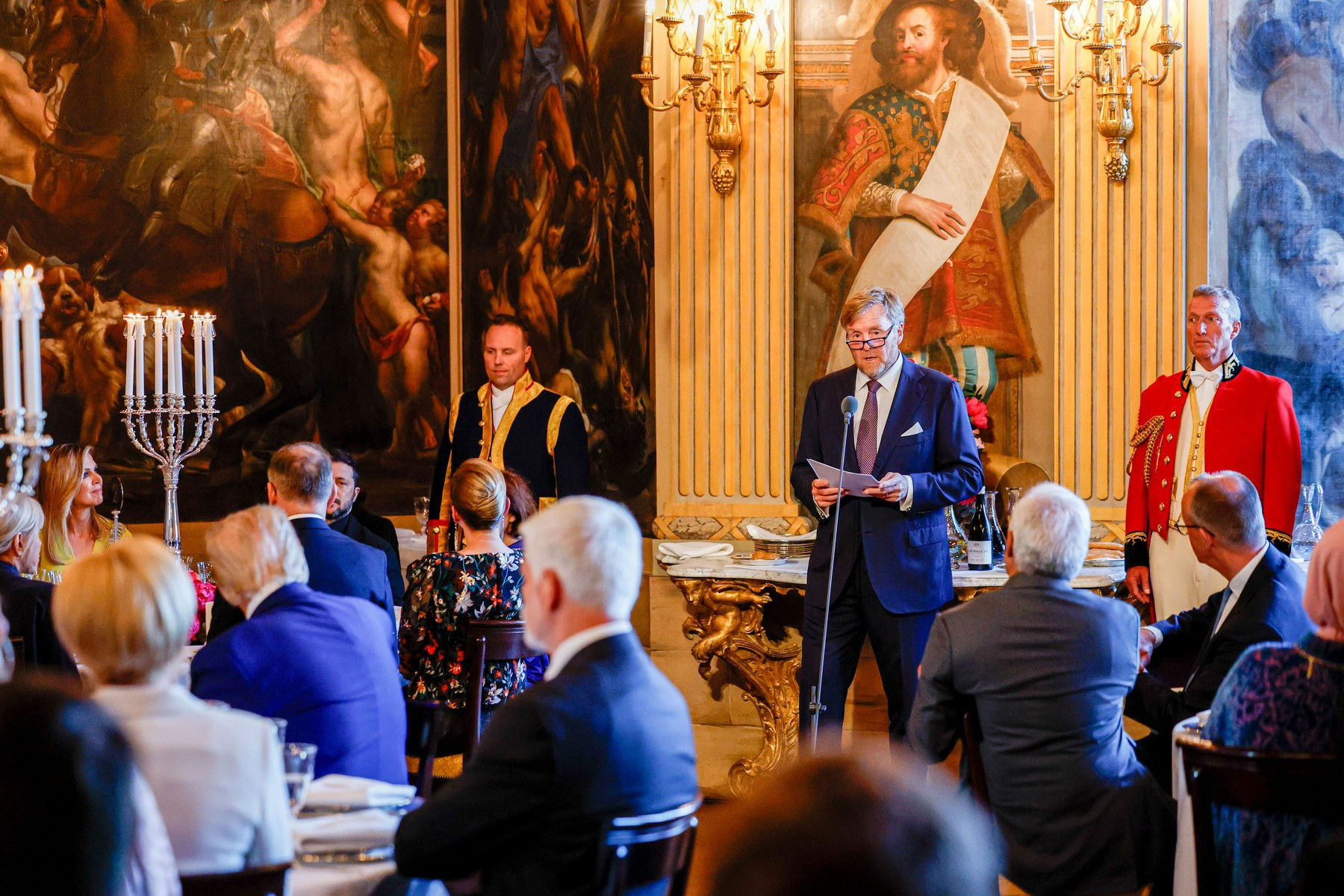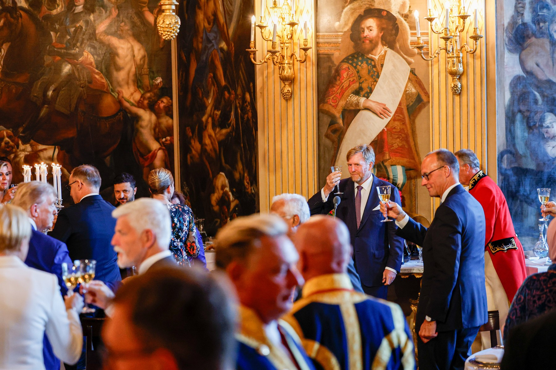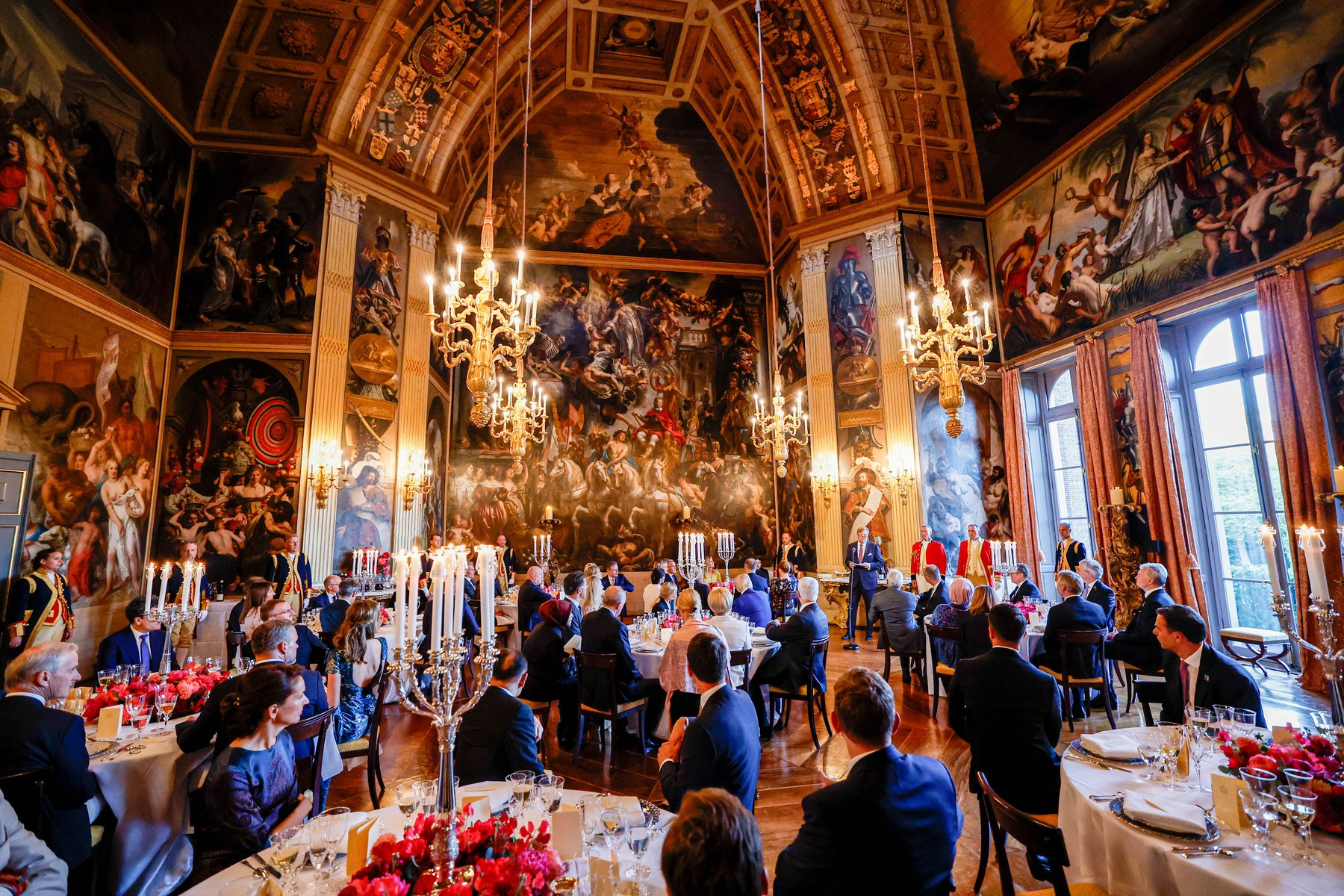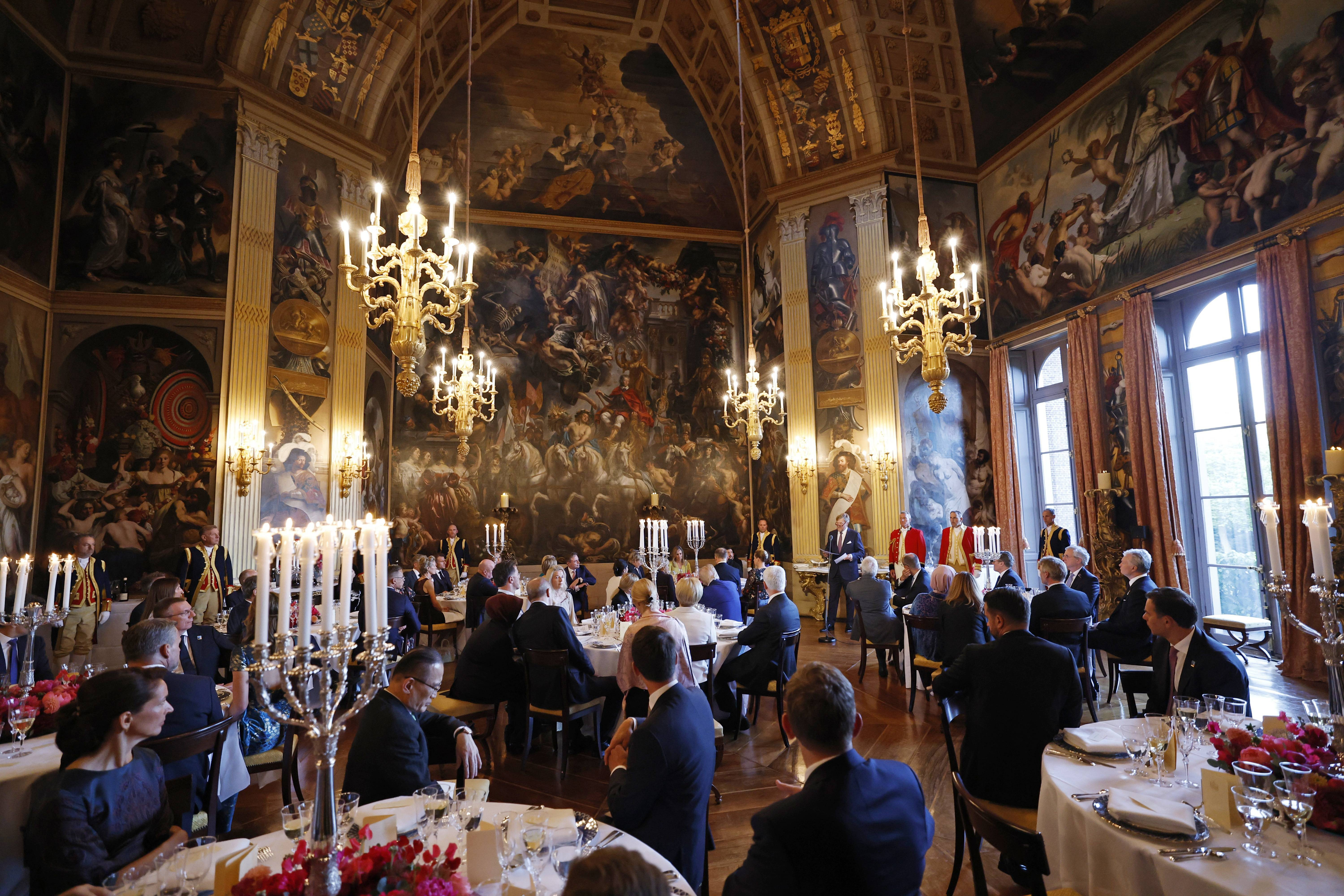 Dineul oferit de familia regală a Țărilor de Jos liderilor NATO reuniți la Haga a avut parte de strălucirea aristocratică pe care doar astfel de evenimente o pot impune. Sala aleasă este atât de spectaculoasă, încât până și Trump s-a arătat impresionat.