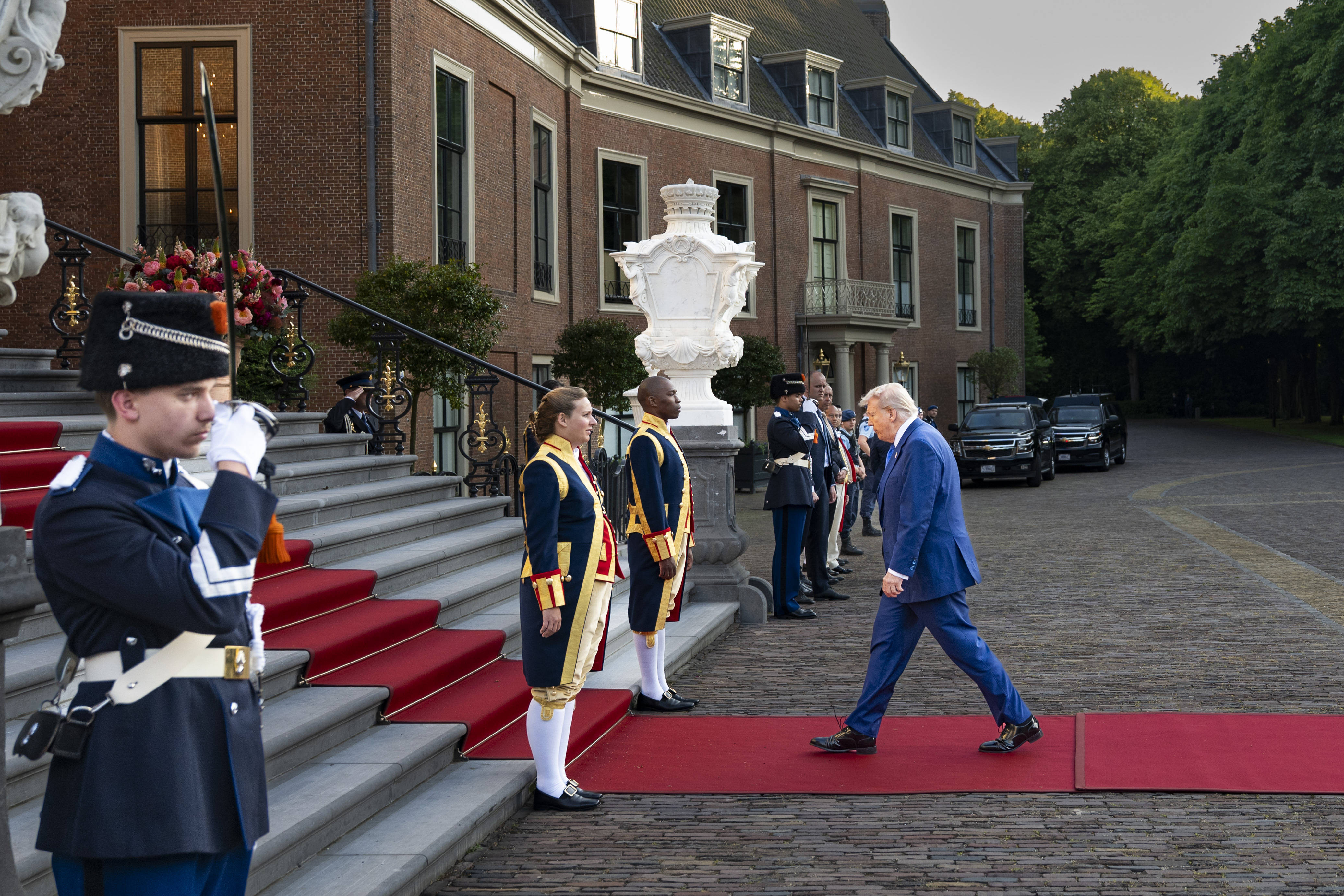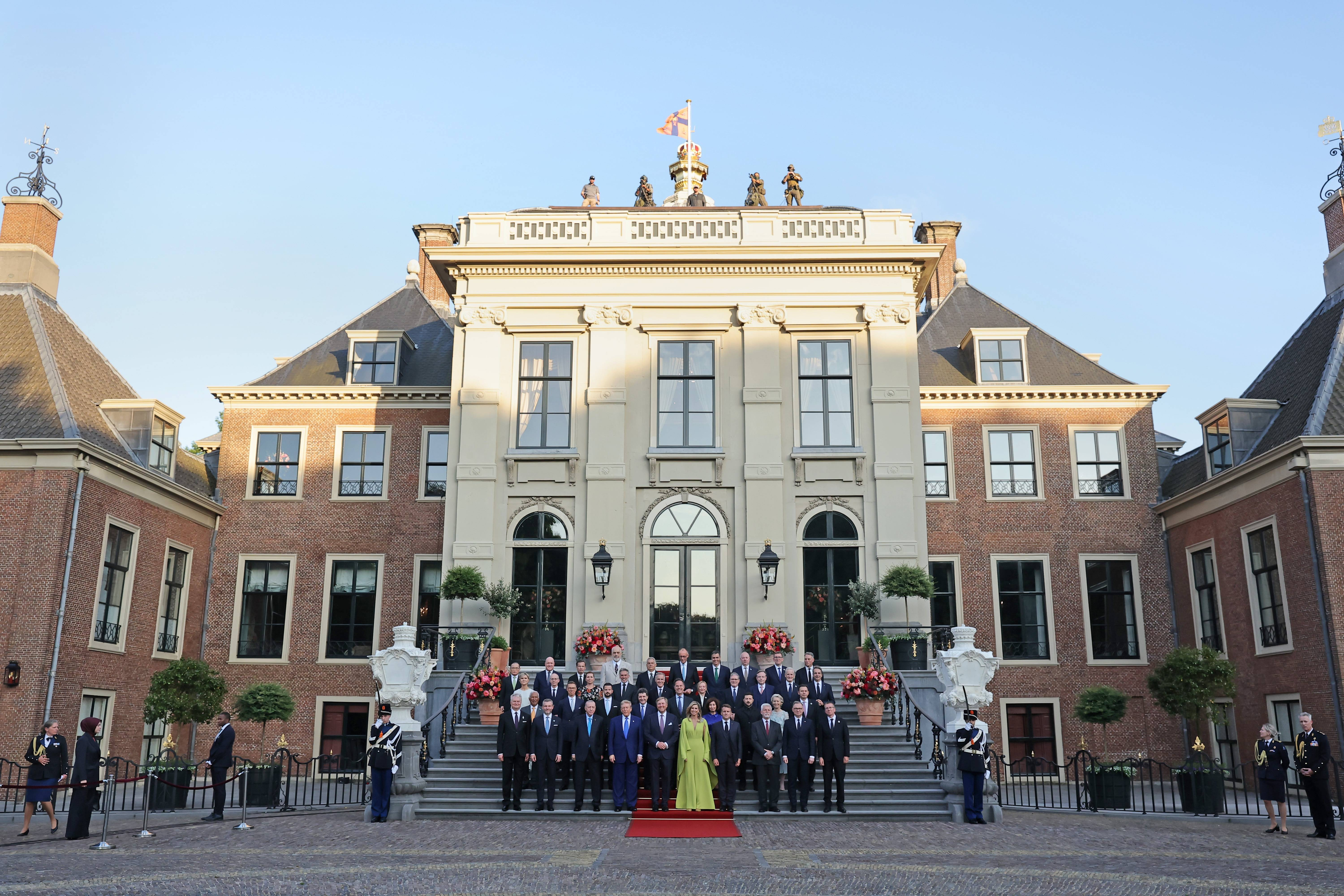 Reprezentanții celei mai puternice alianțe militare de pe planetă au fost primiți la Palatul Huis ten Bosch din Haga de către Regele Willem-Alexander, Regina Maxima și Prințesa Catharina-Amalia ai Țărilor de Jos, la finalul primei zile a summitului NATO.