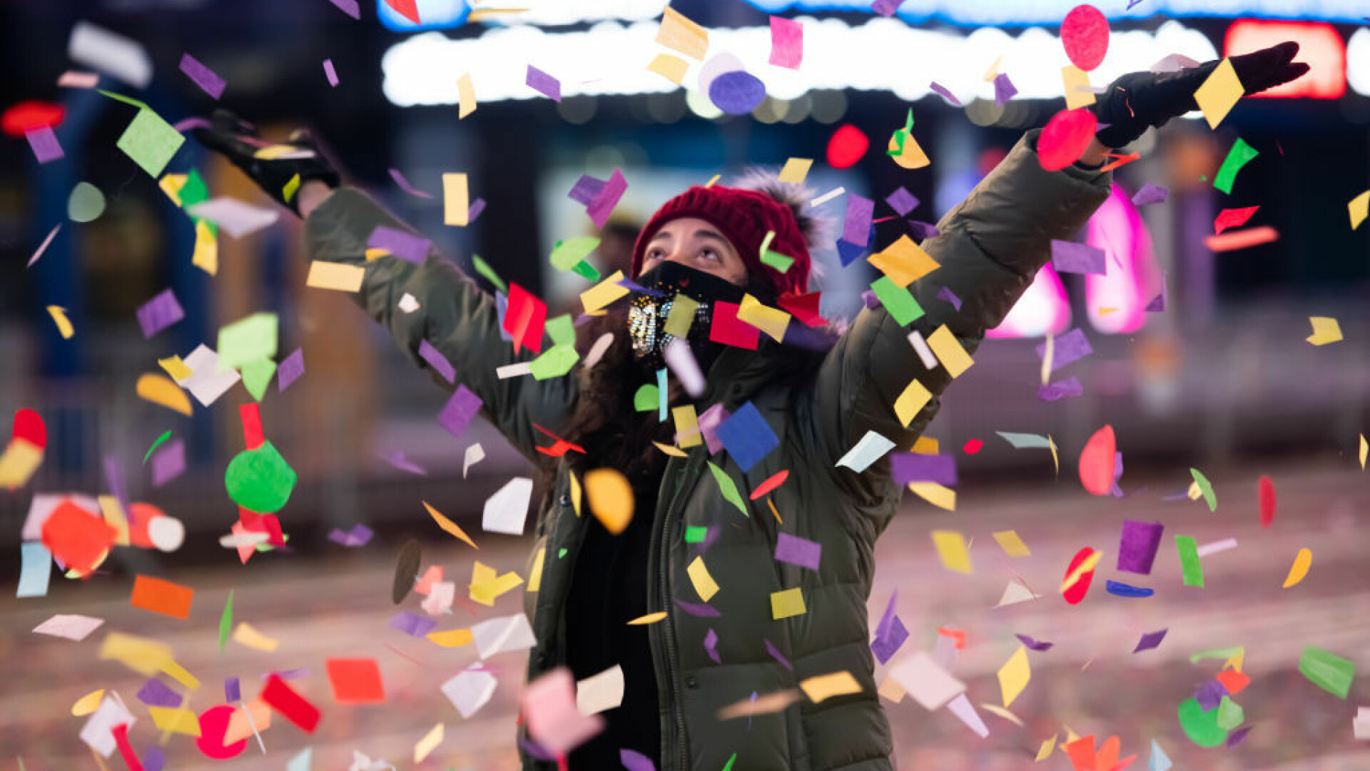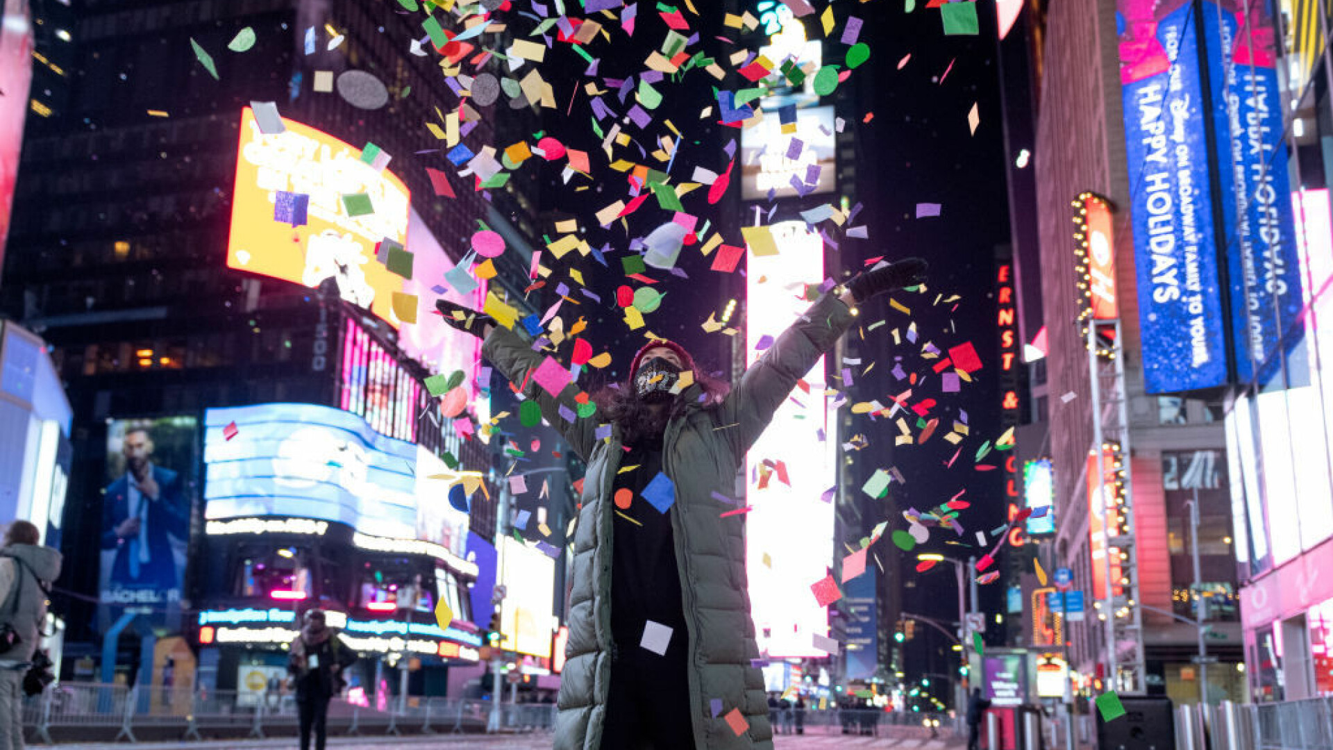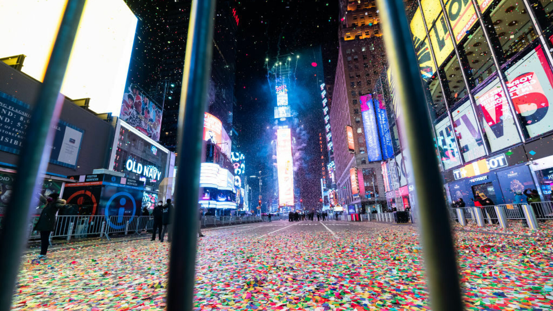 Totuşi New York-ul a dorit să-i onoreze pe lucrătorii esenţiali şi să permită unui mic grup de 60 dintre ei, însoţiţi de persoanele apropiate, să sărbătorească venirea Anului Nou din mici spaţii îngrădite instalate în Times Square.